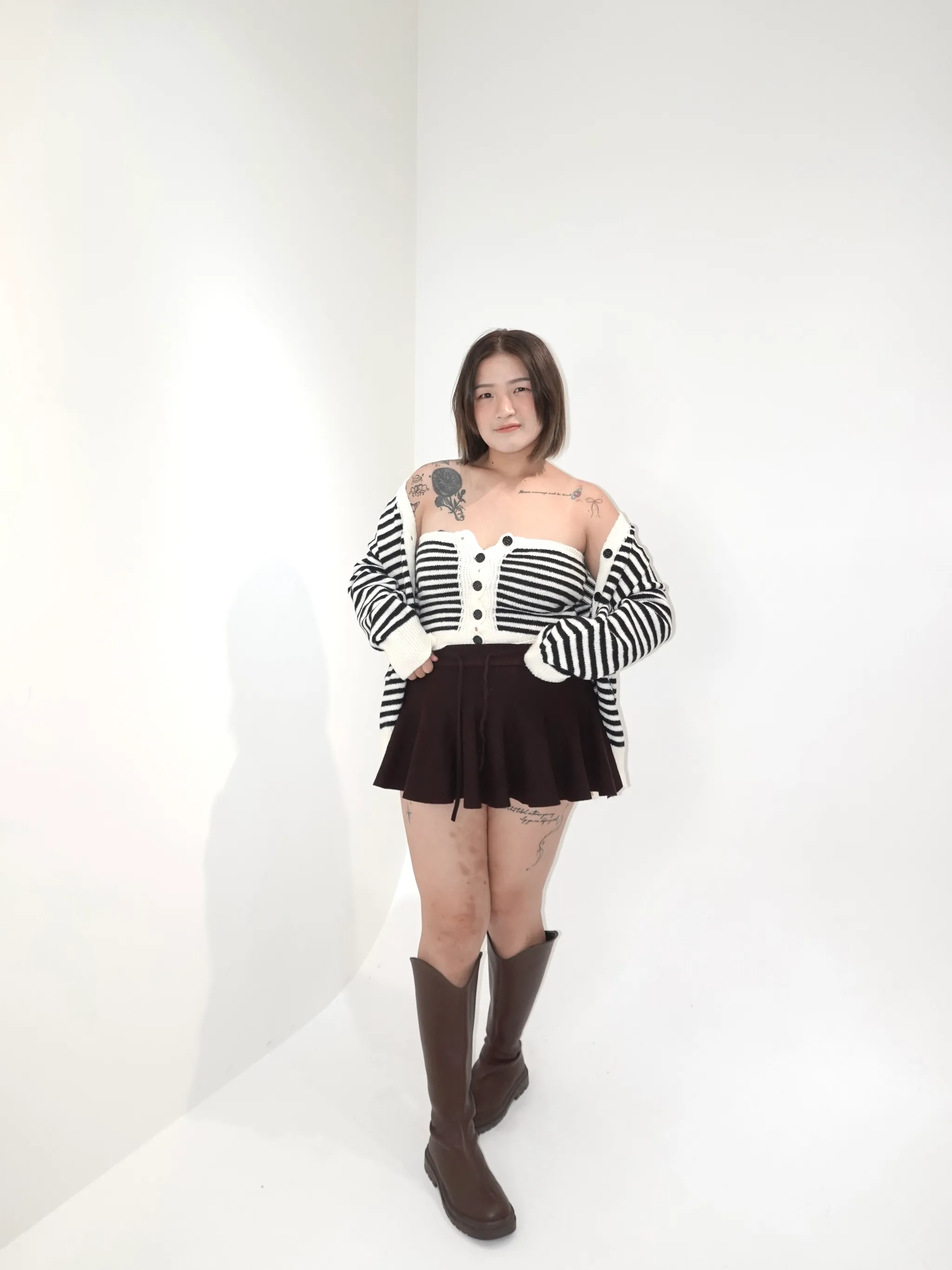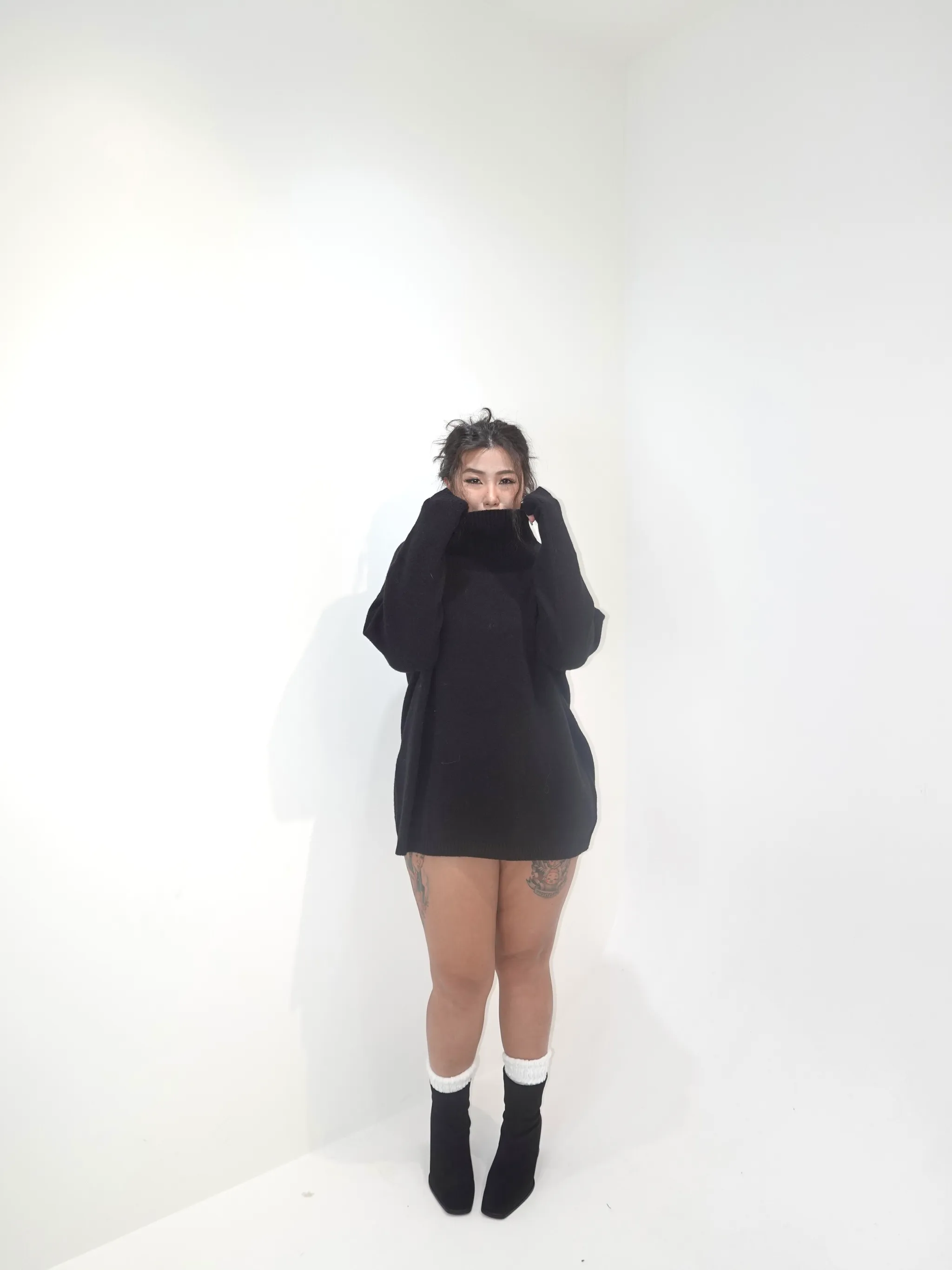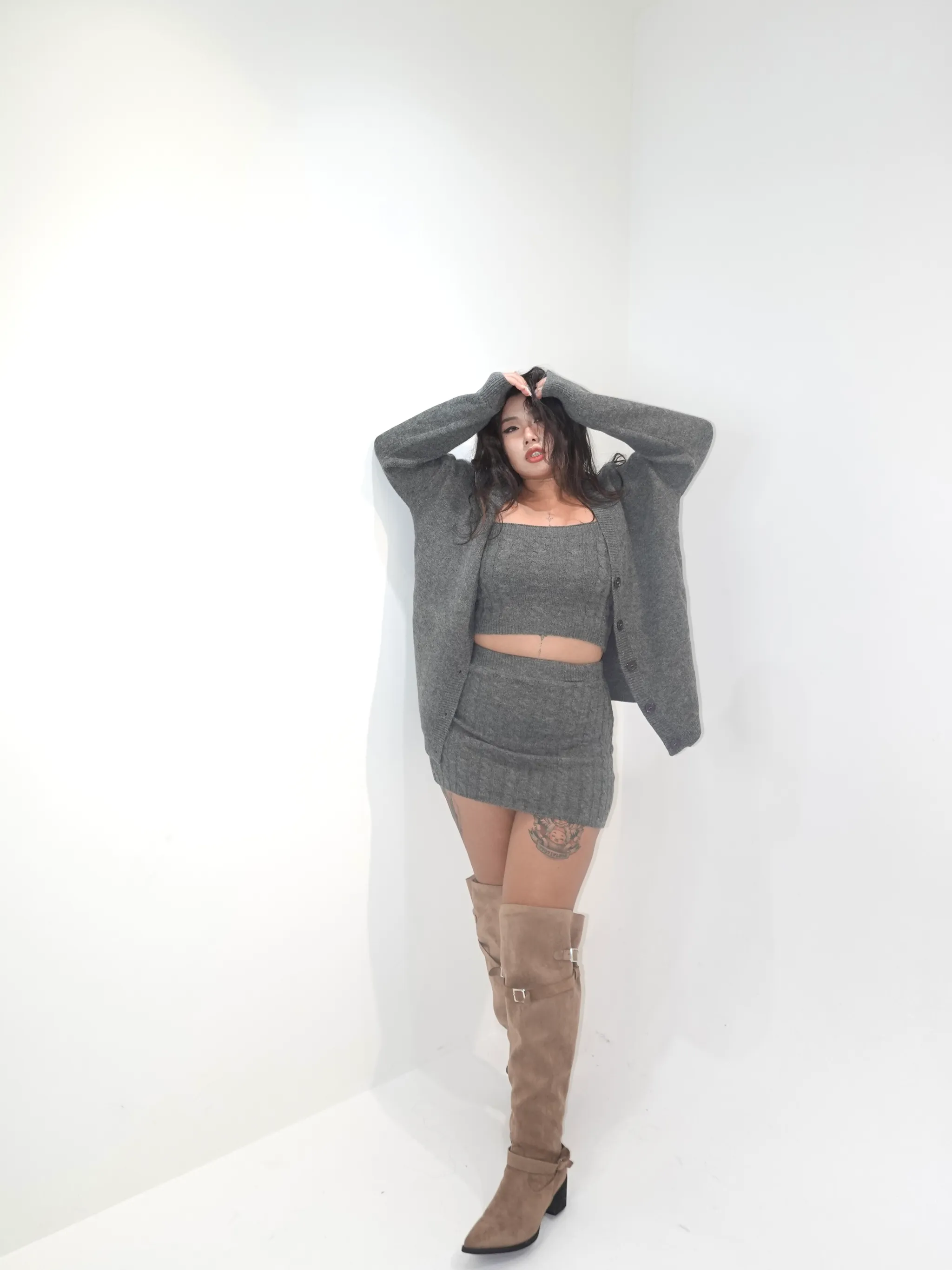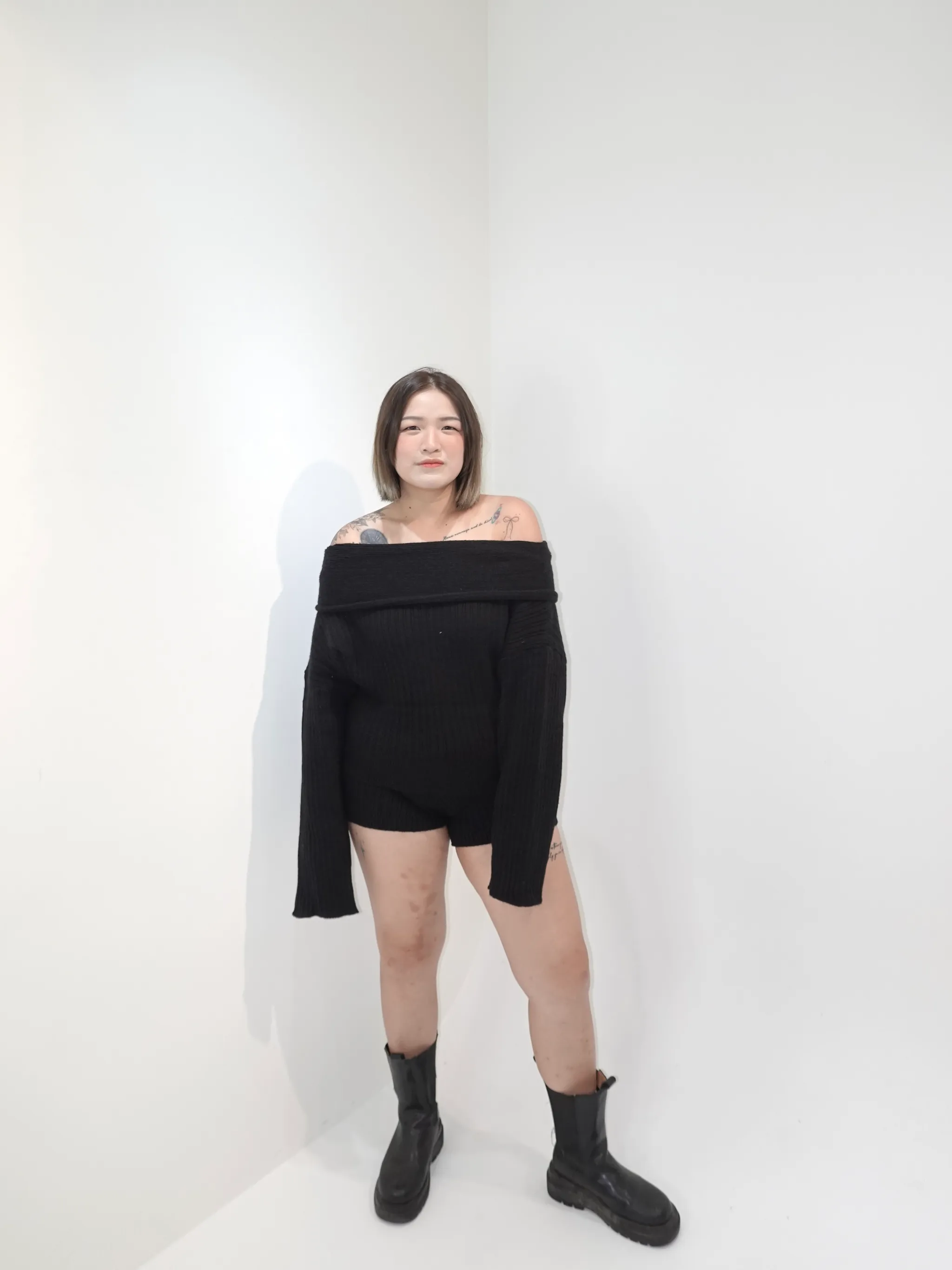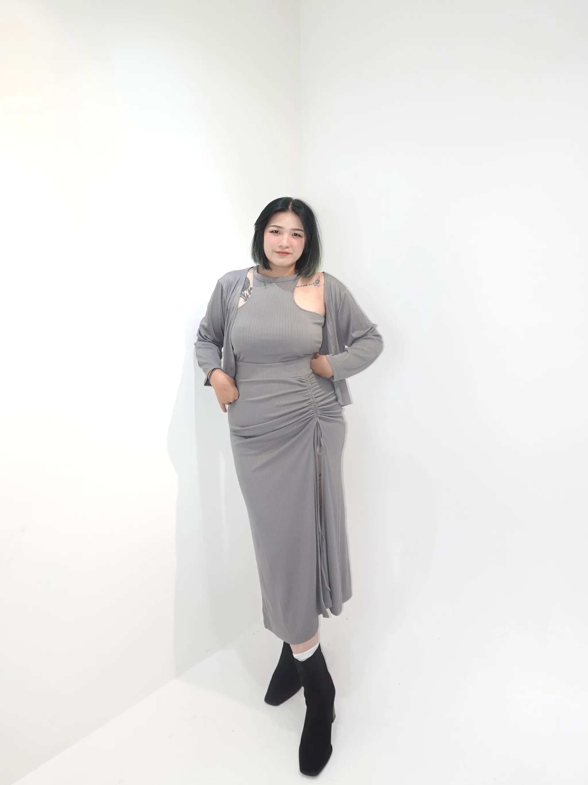麻花針織一字領下圓擺長版上衣 附綁帶+皮帶