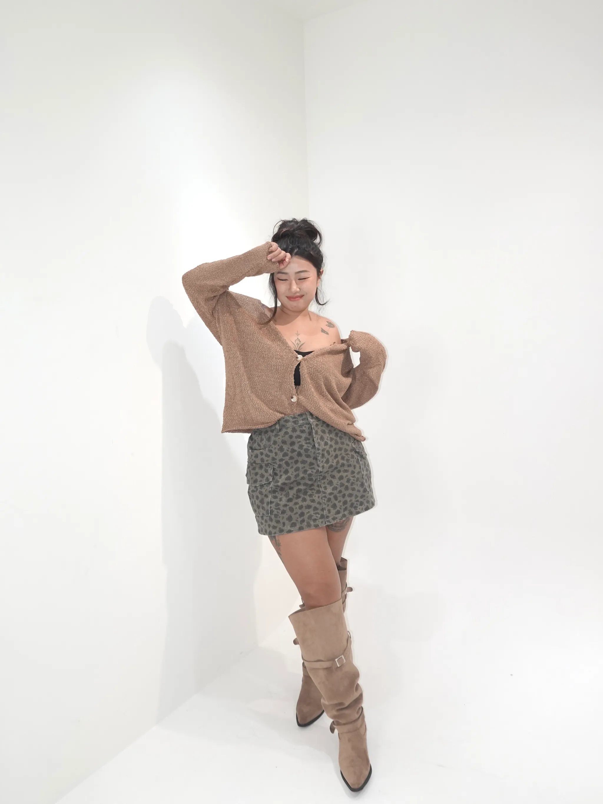 麂皮大頭中筒靴
