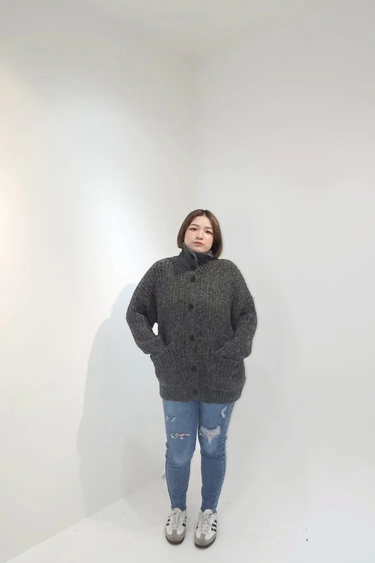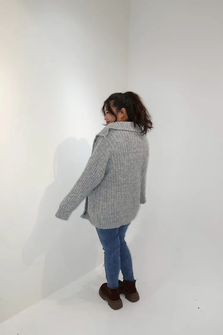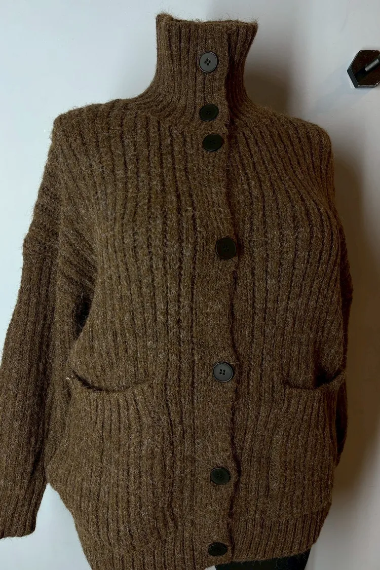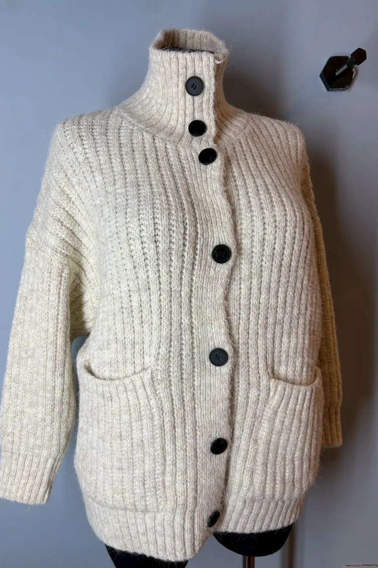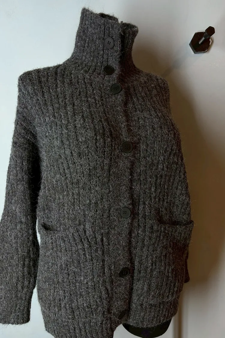 排釦立領針織口袋外套