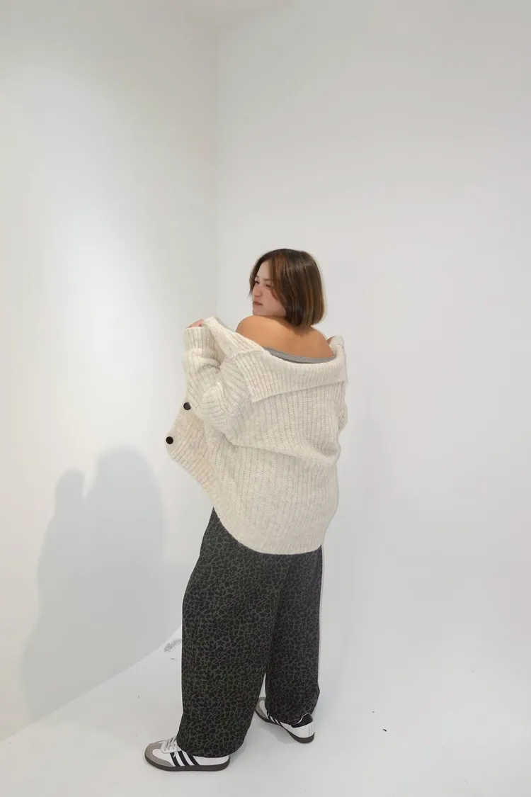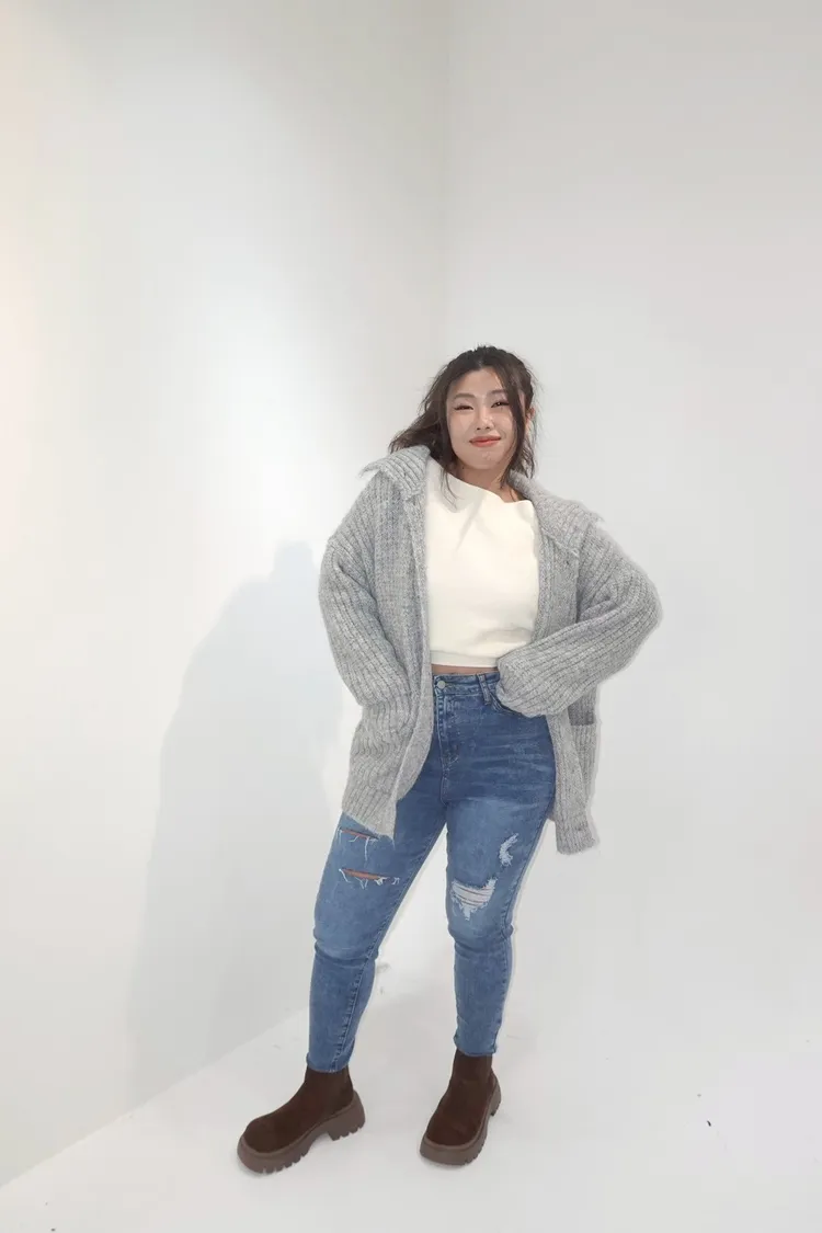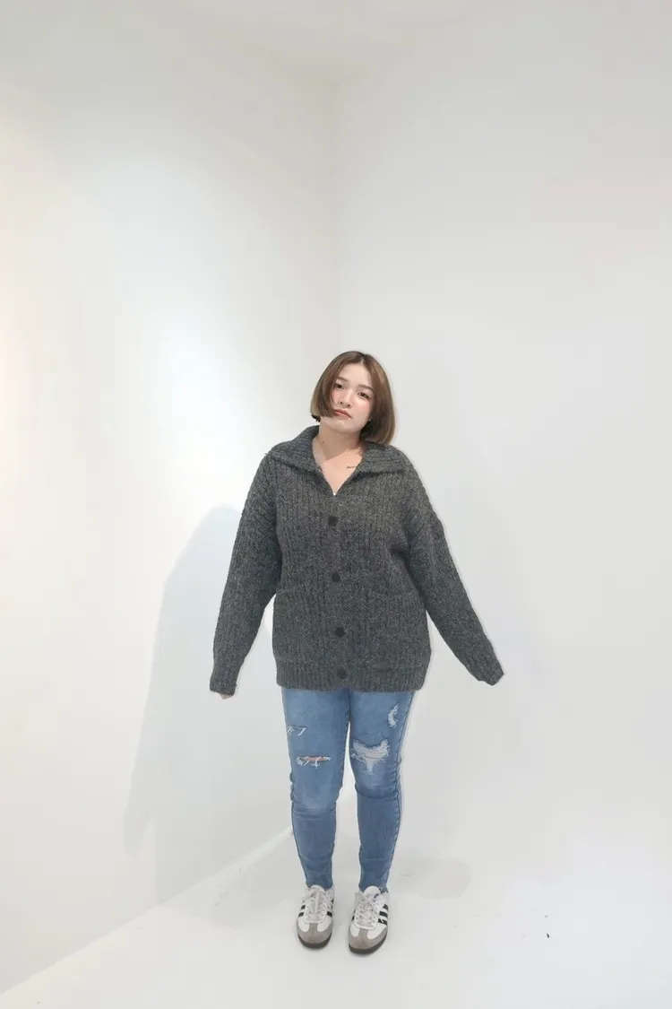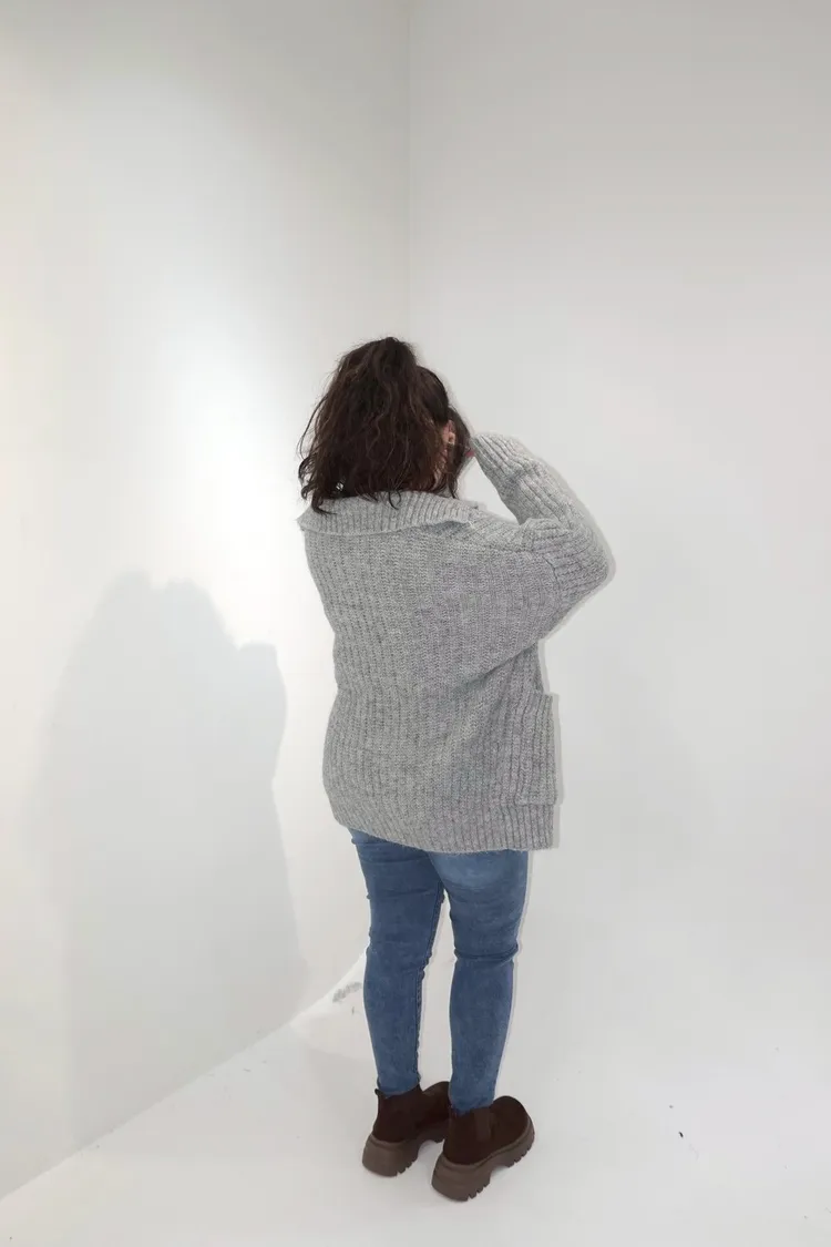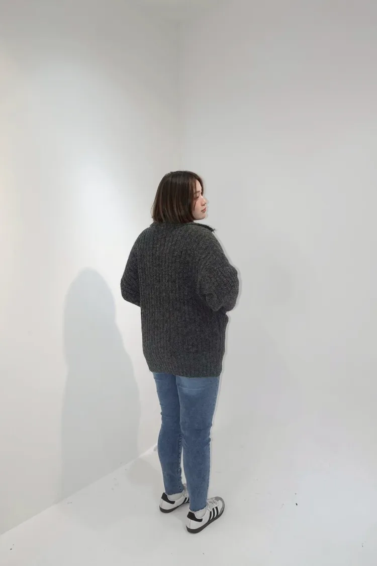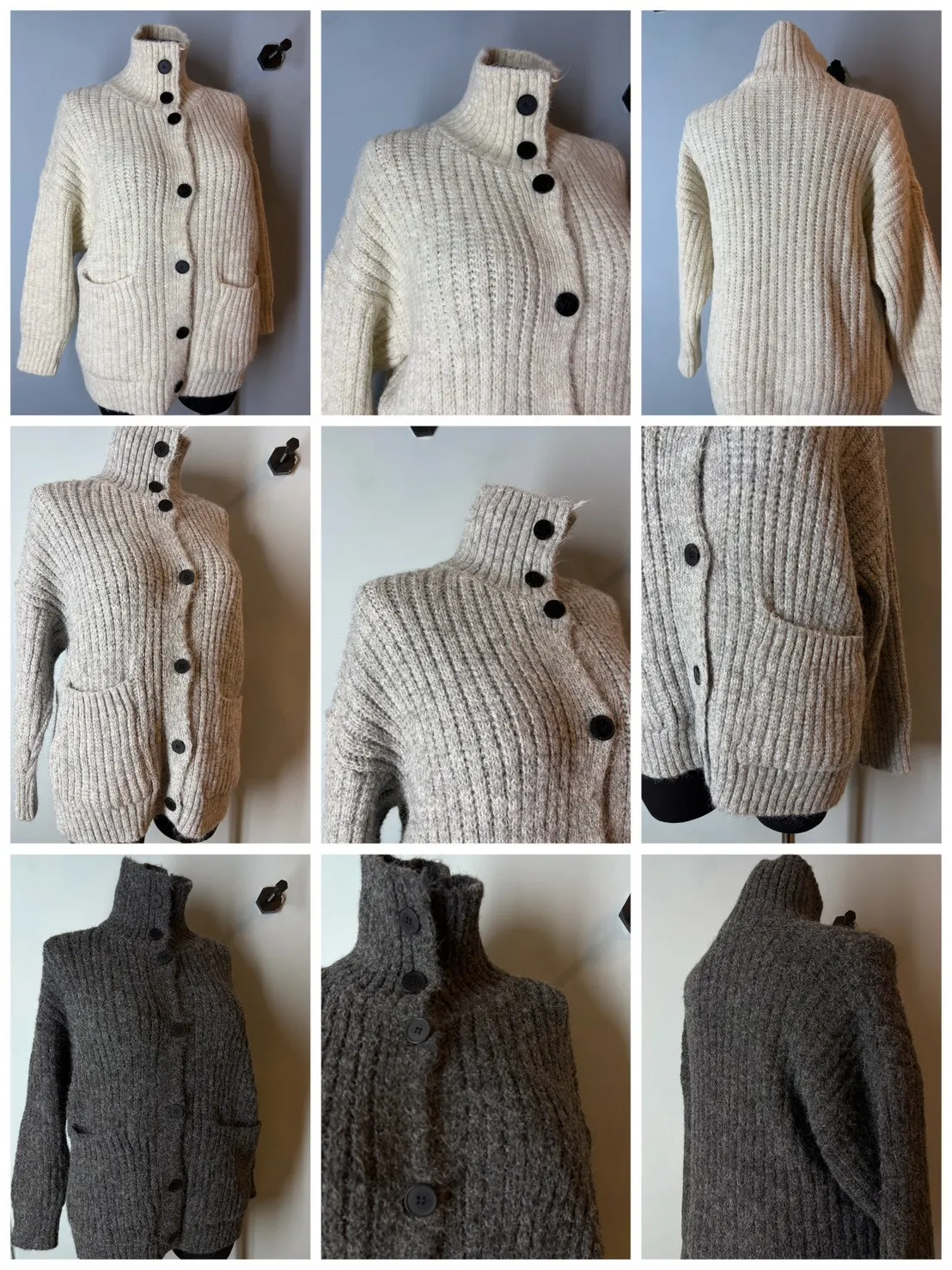 排釦立領針織口袋外套
