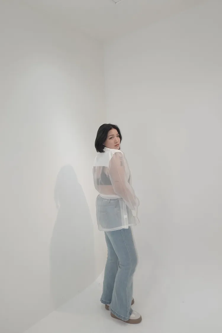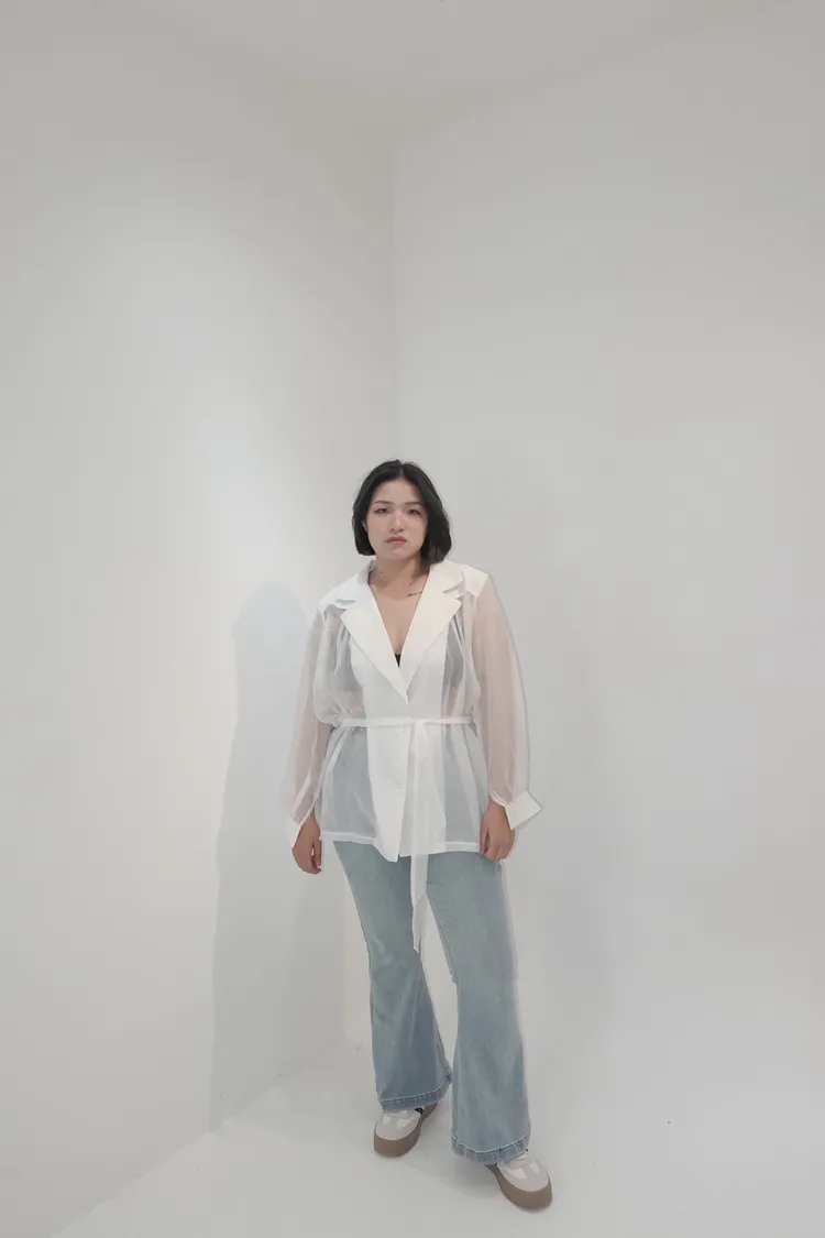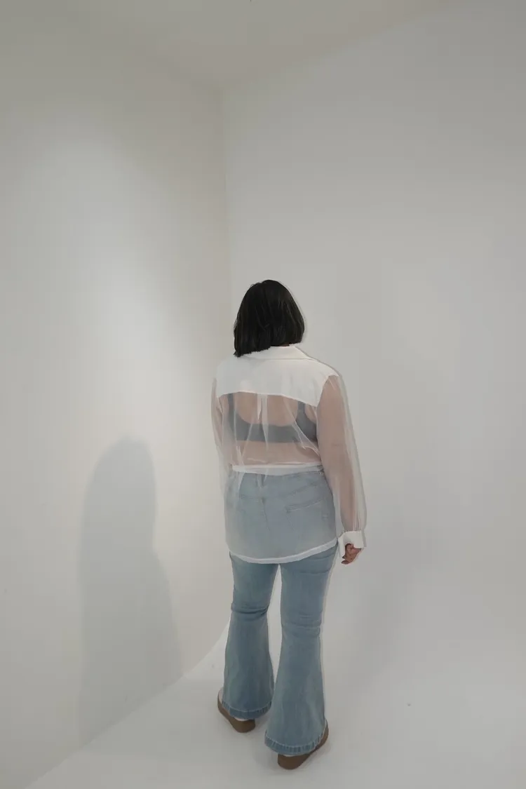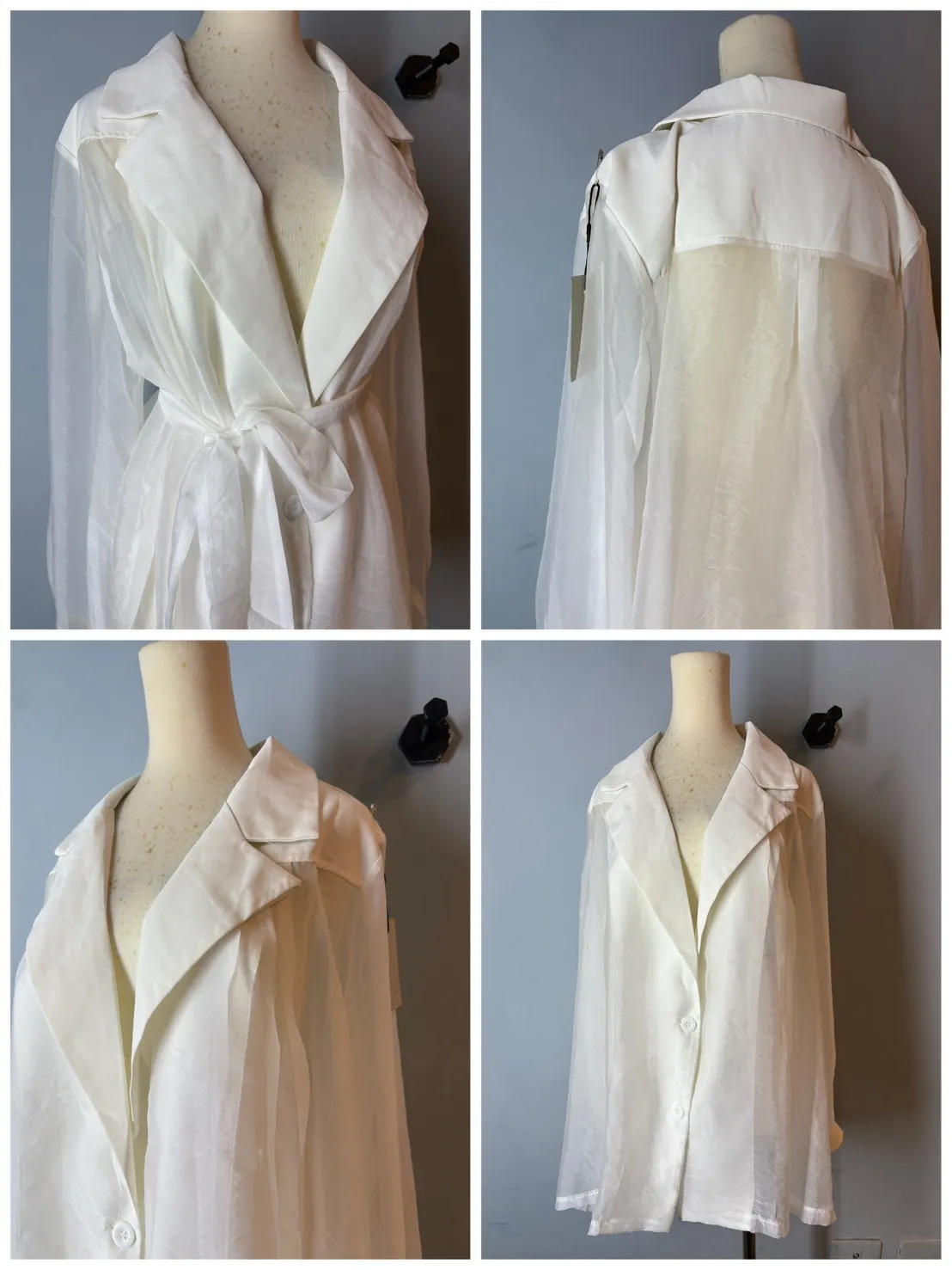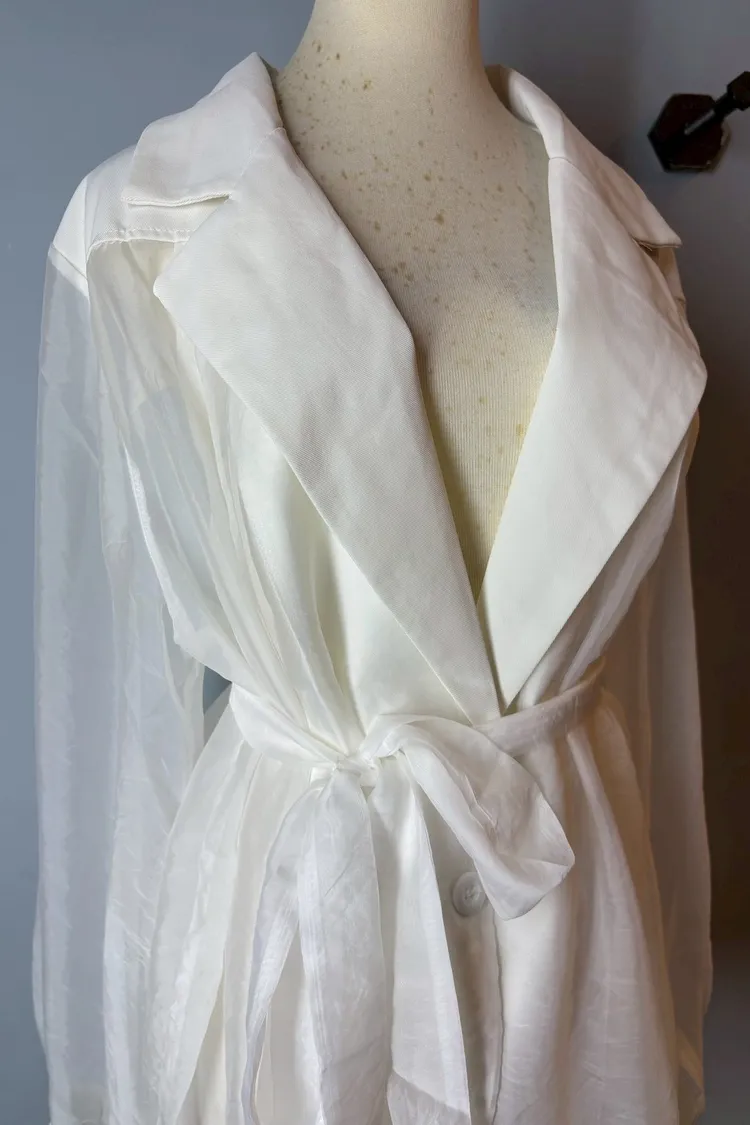 透視翻領排釦上衣 附綁帶