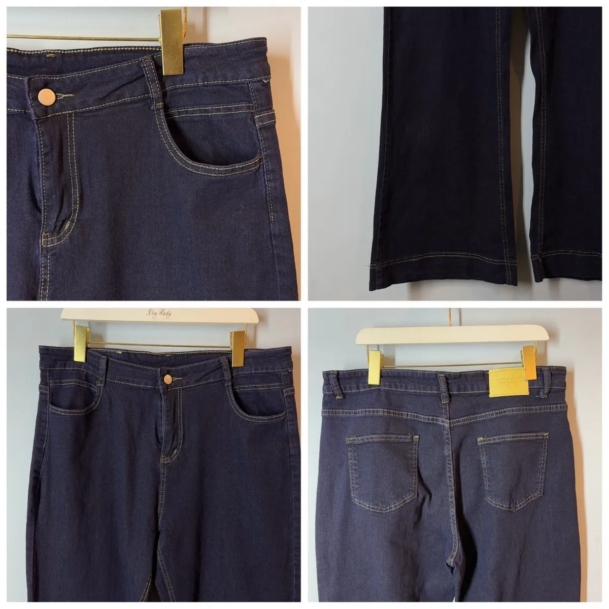 單釦撞色車線牛仔寬褲