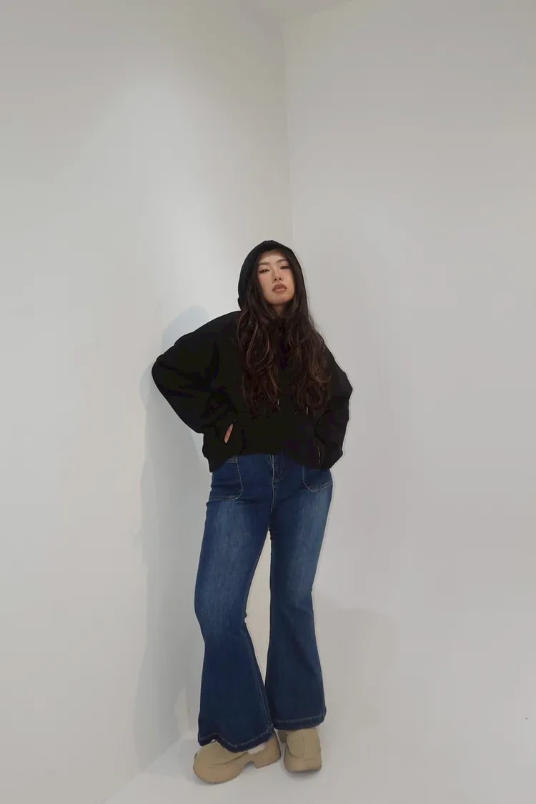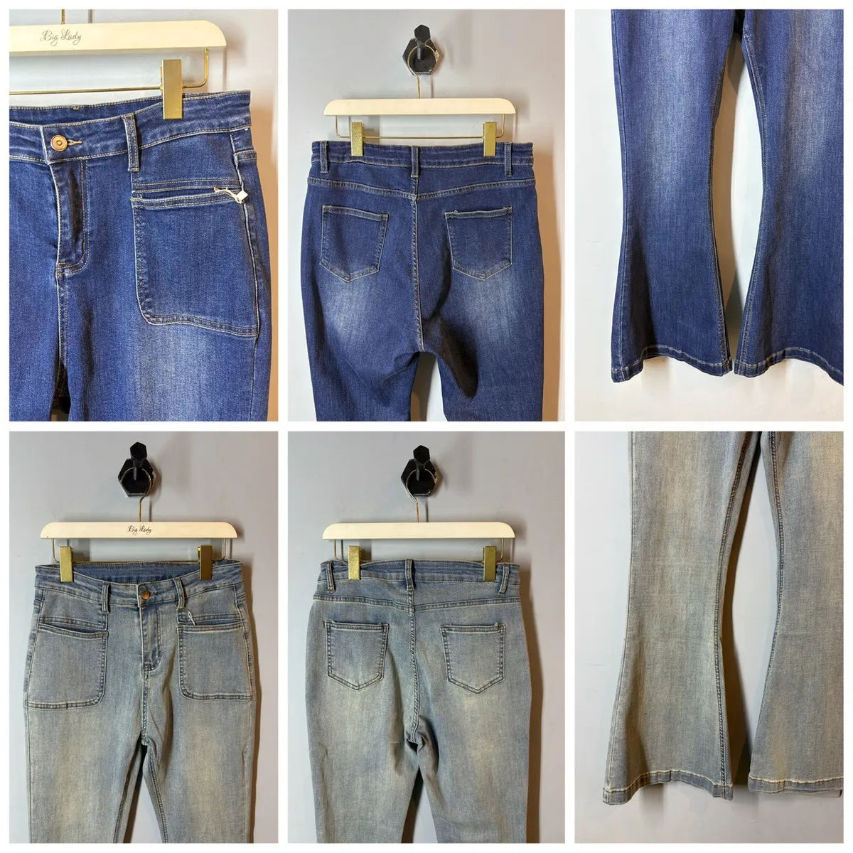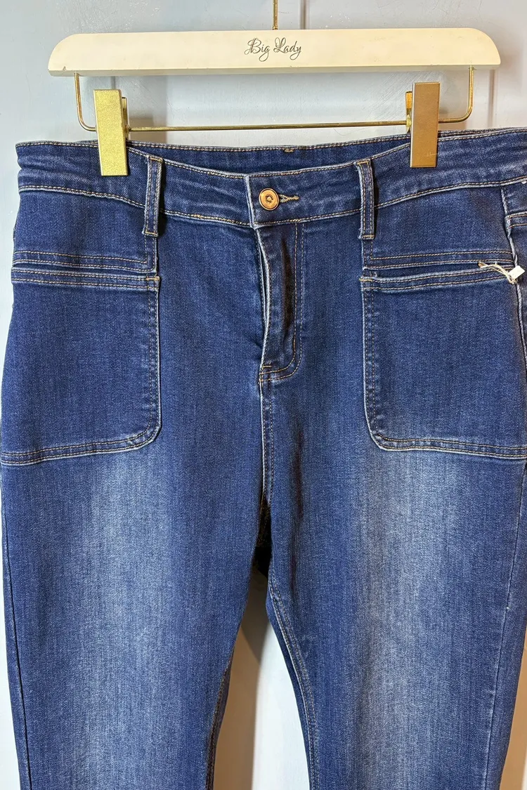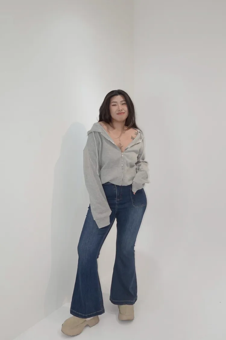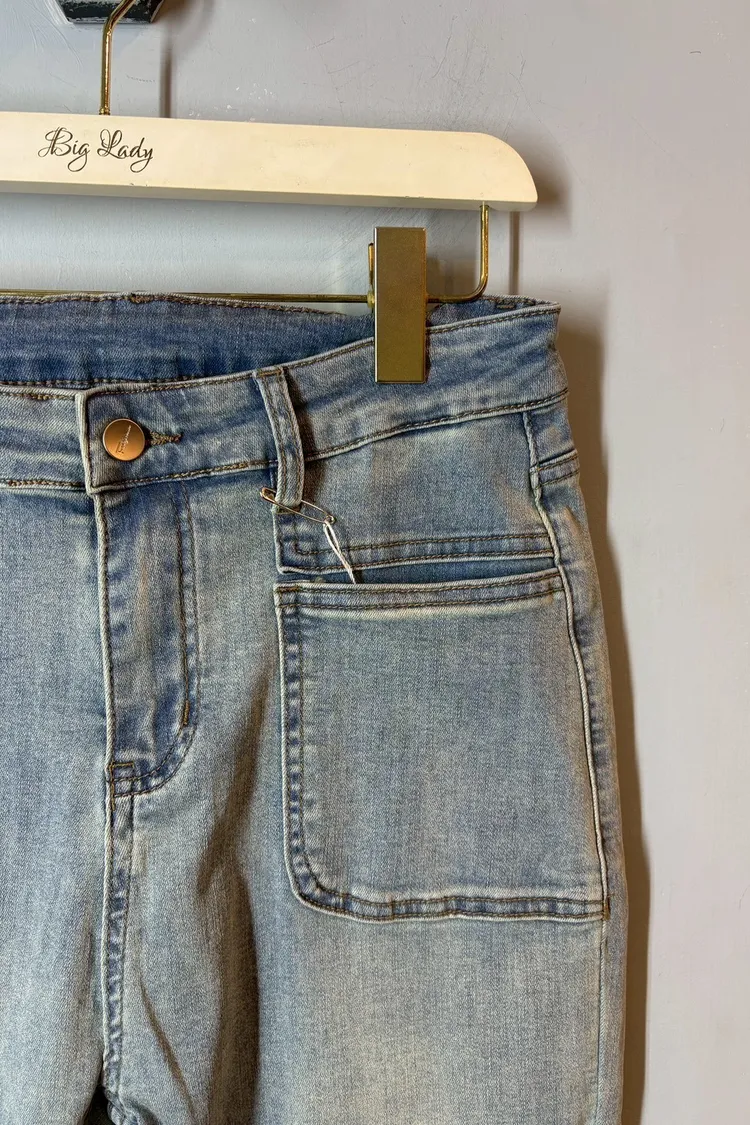 彈力單釦喇叭牛仔褲