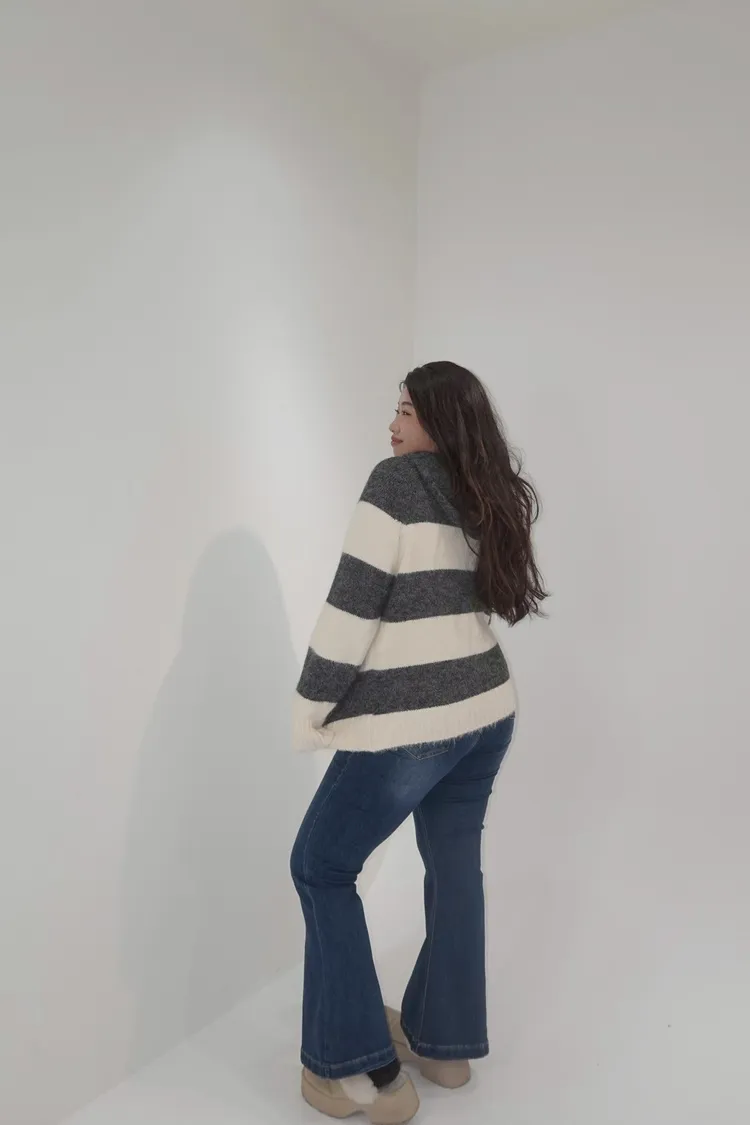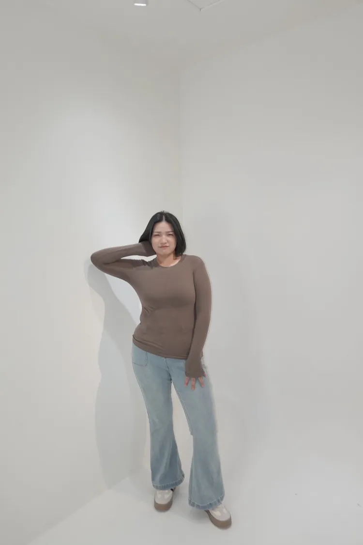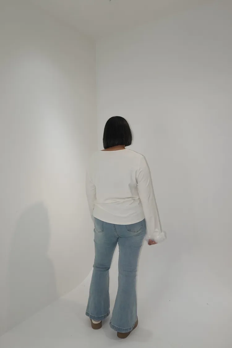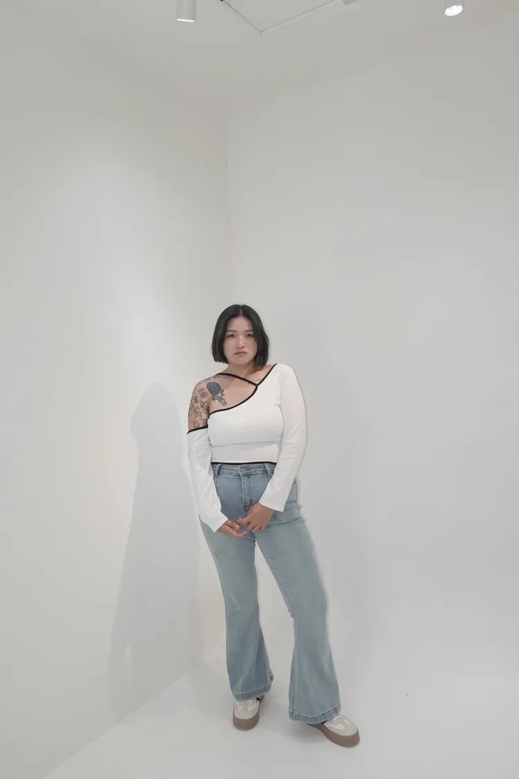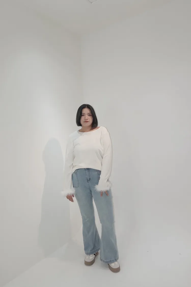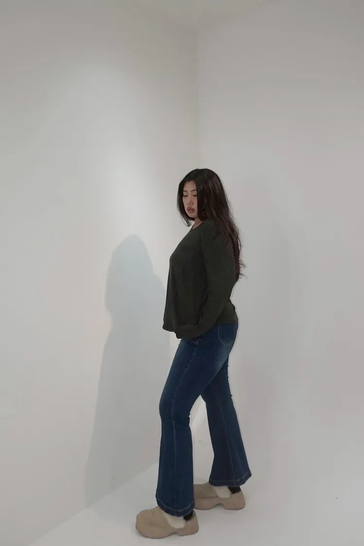 彈力單釦喇叭牛仔褲