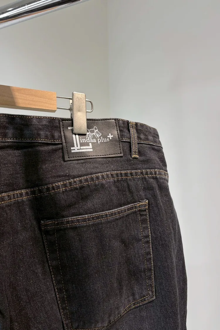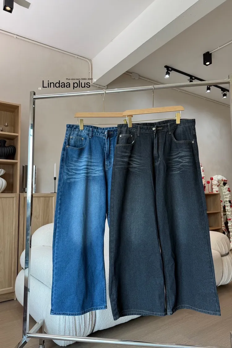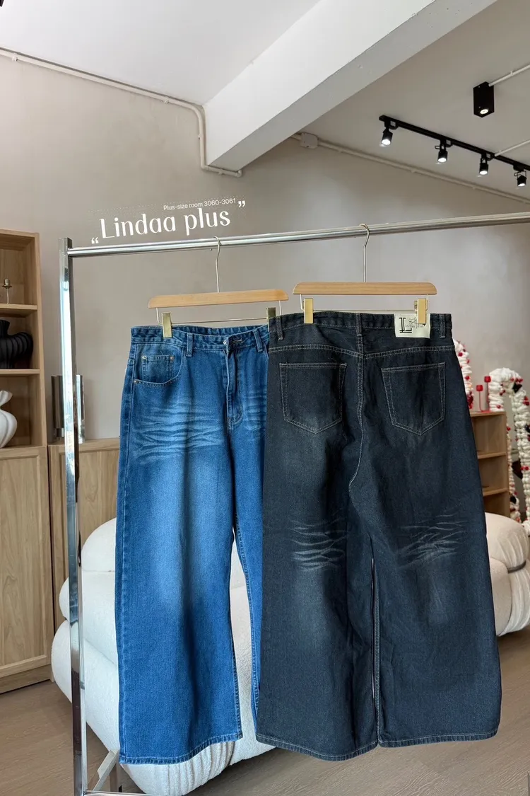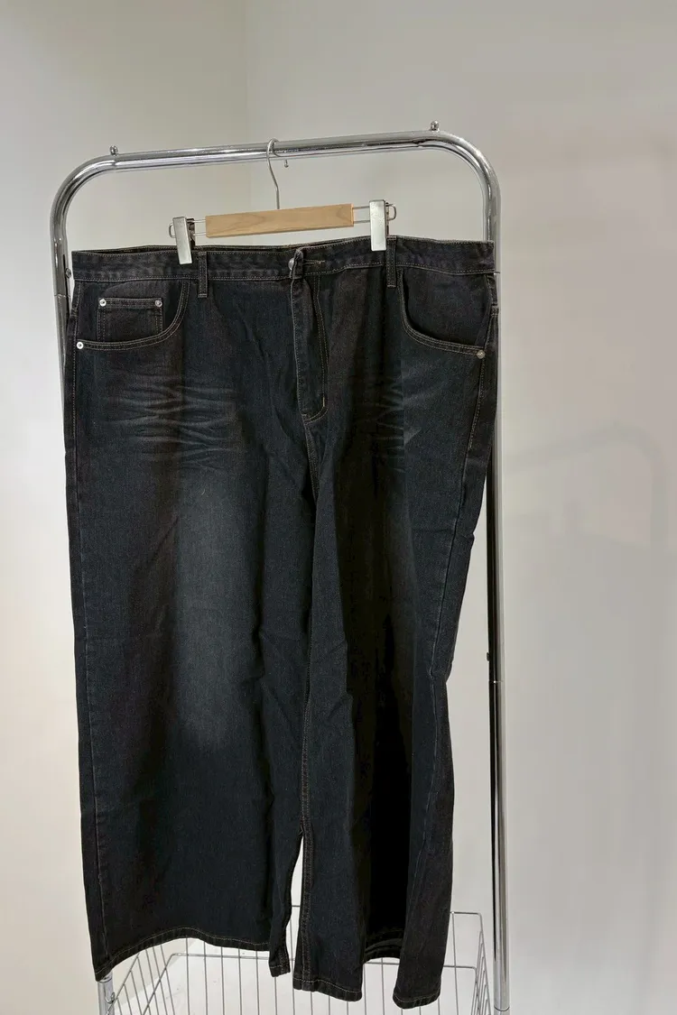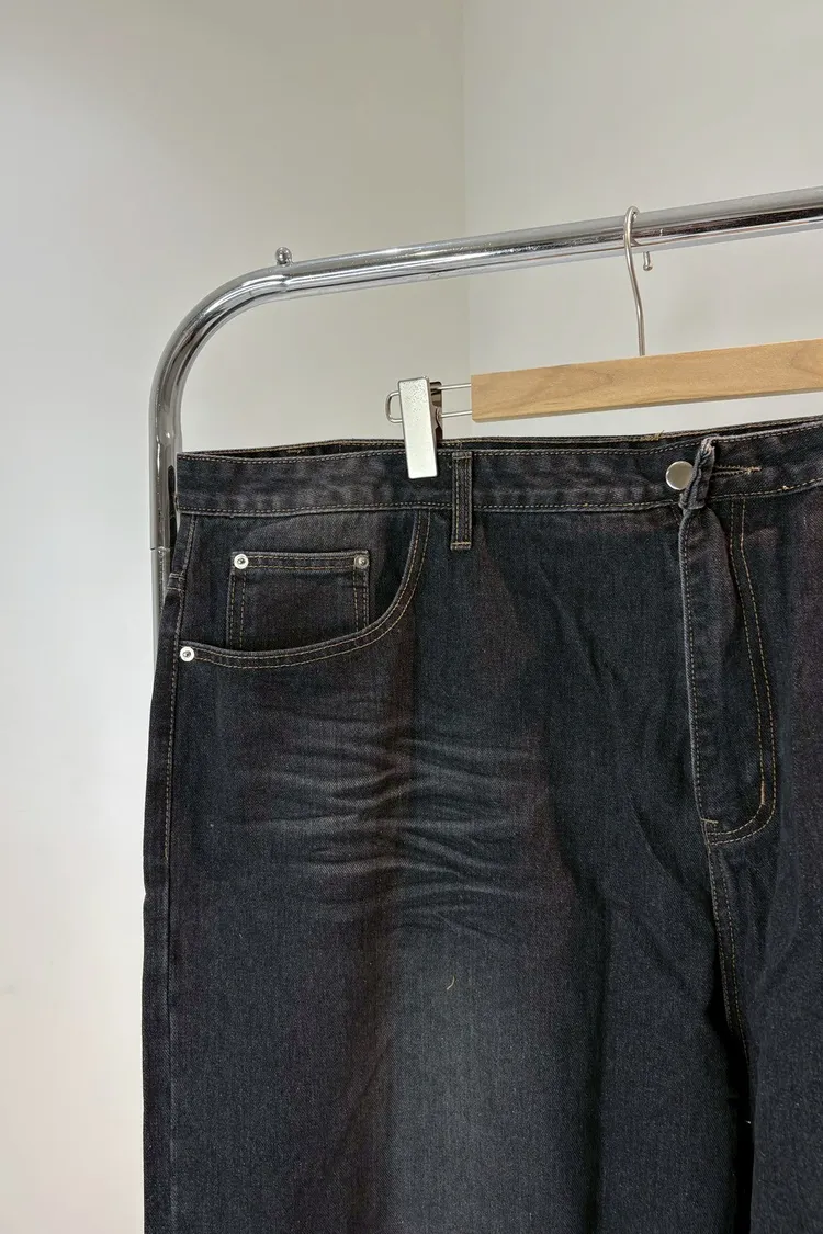 美式單釦牛仔寬褲