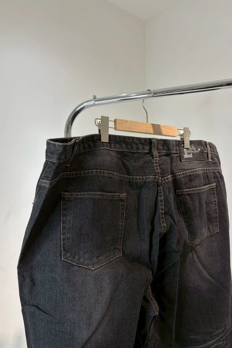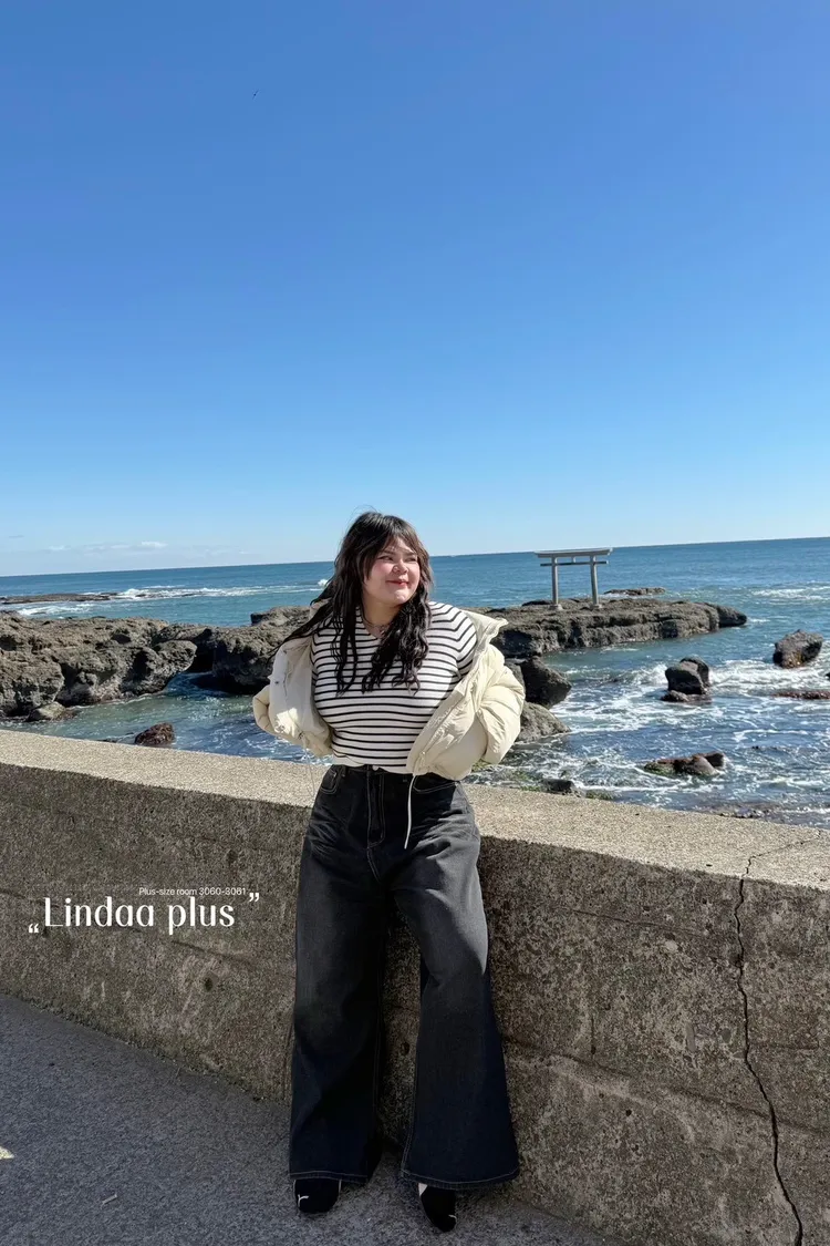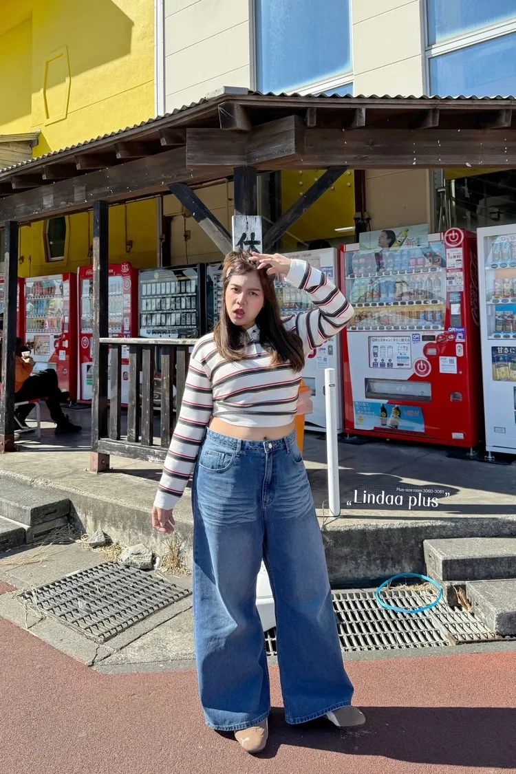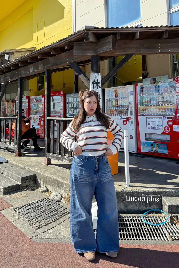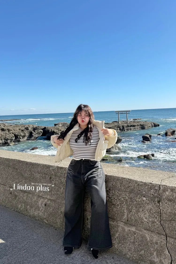 美式單釦牛仔寬褲