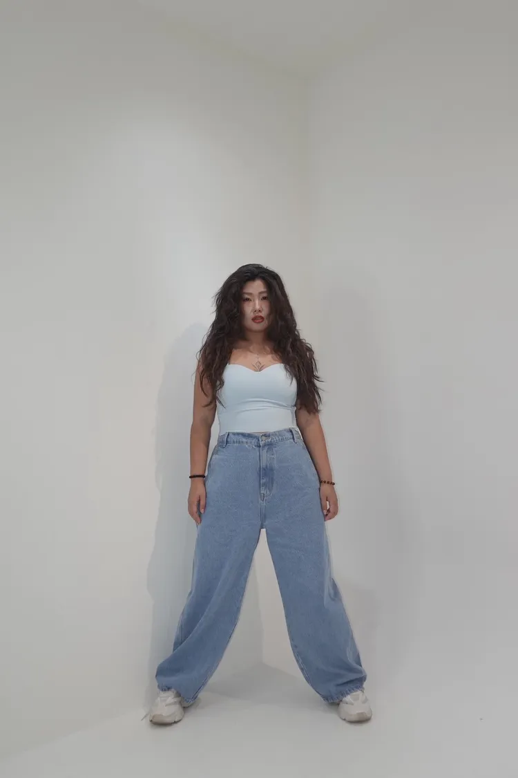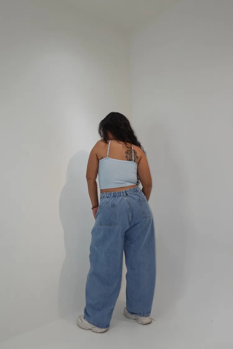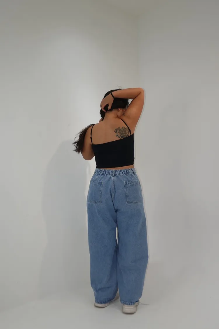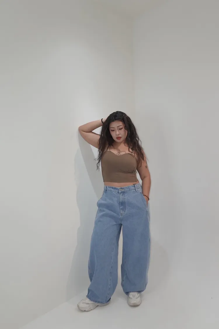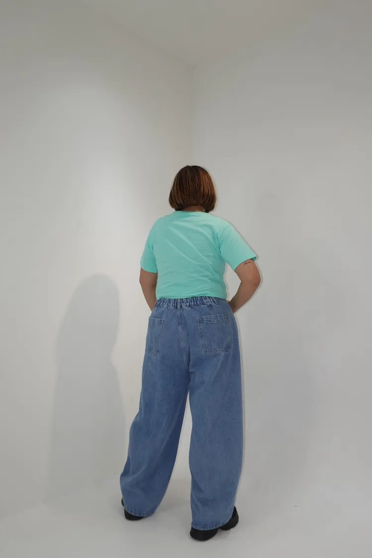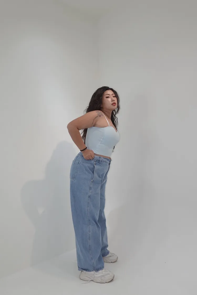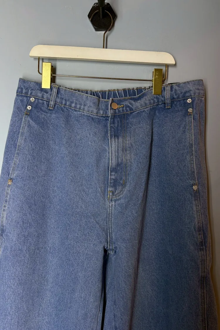 單釦側壓線牛仔彎刀褲