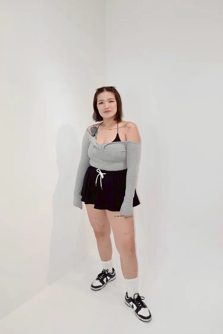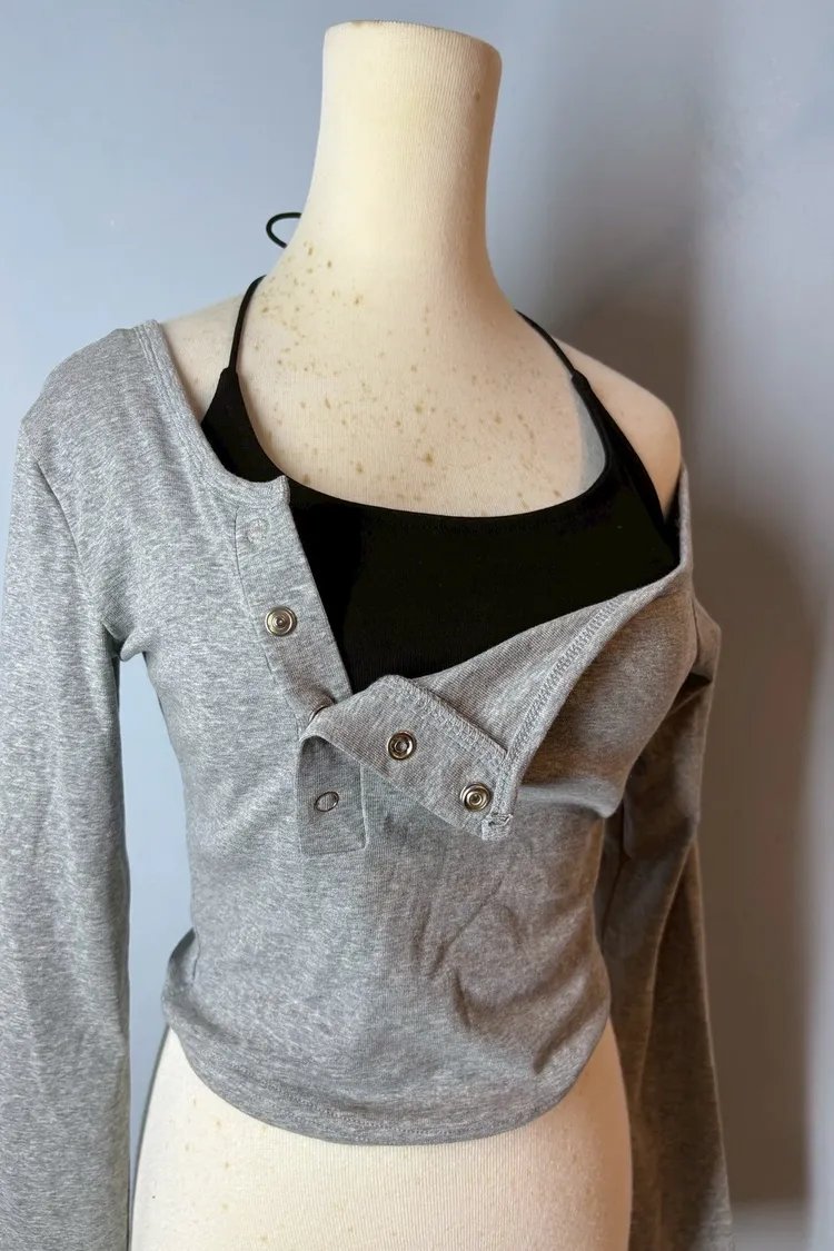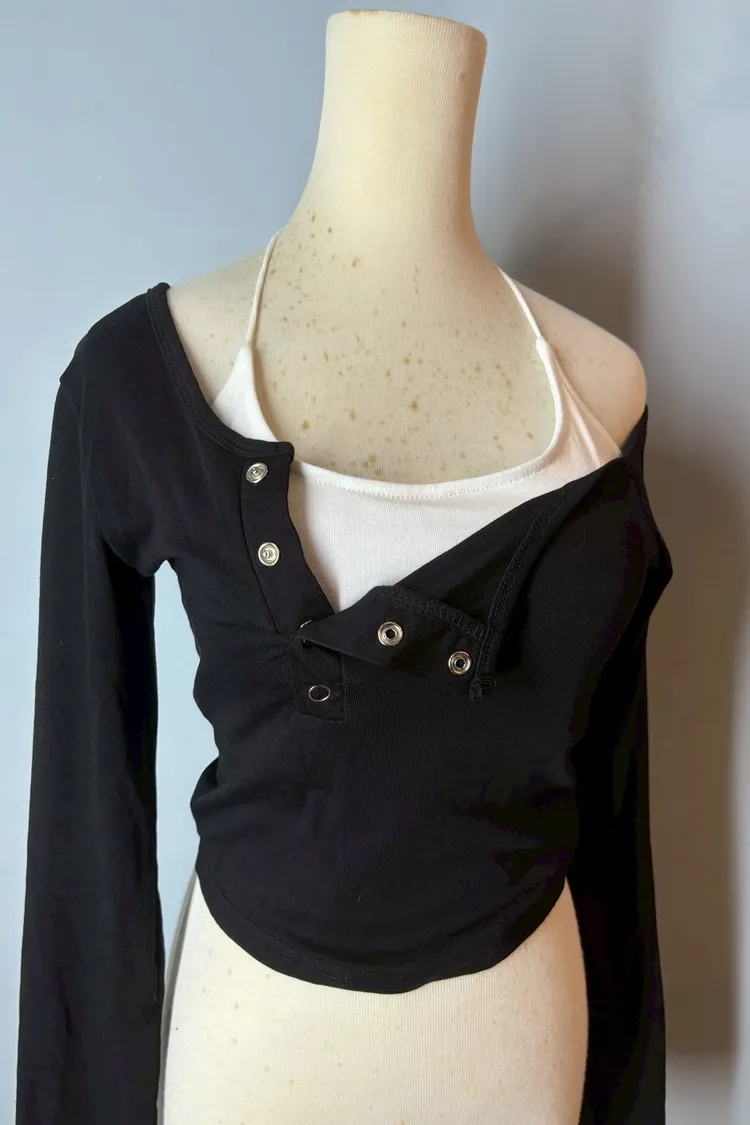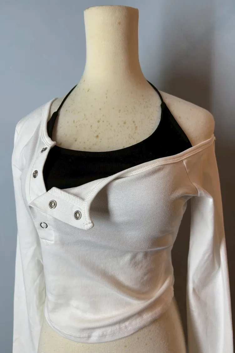 排釦斜肩長袖背心兩件套-現貨+預購