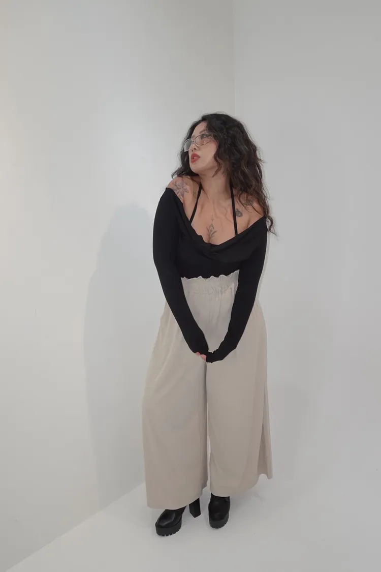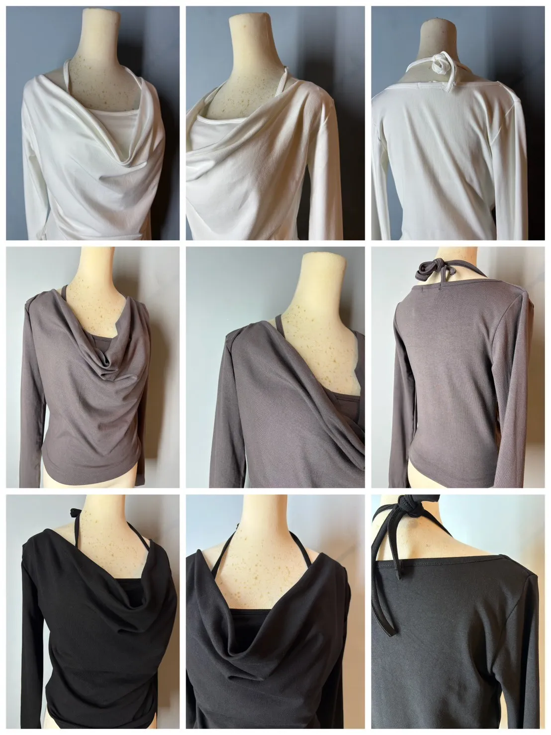 綁脖Bra背心盪領長袖上衣套裝-現貨+預購