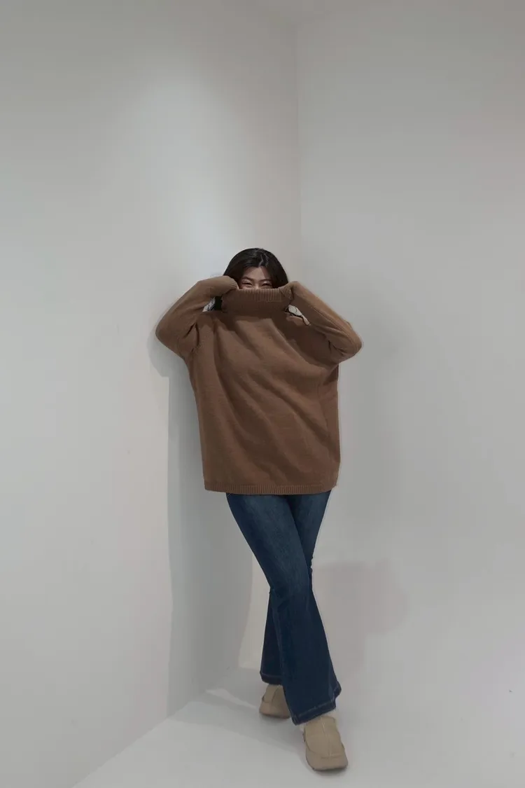 高領素色針織毛衣