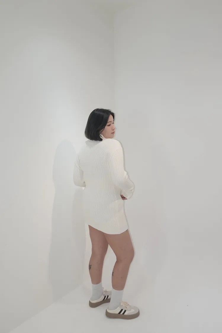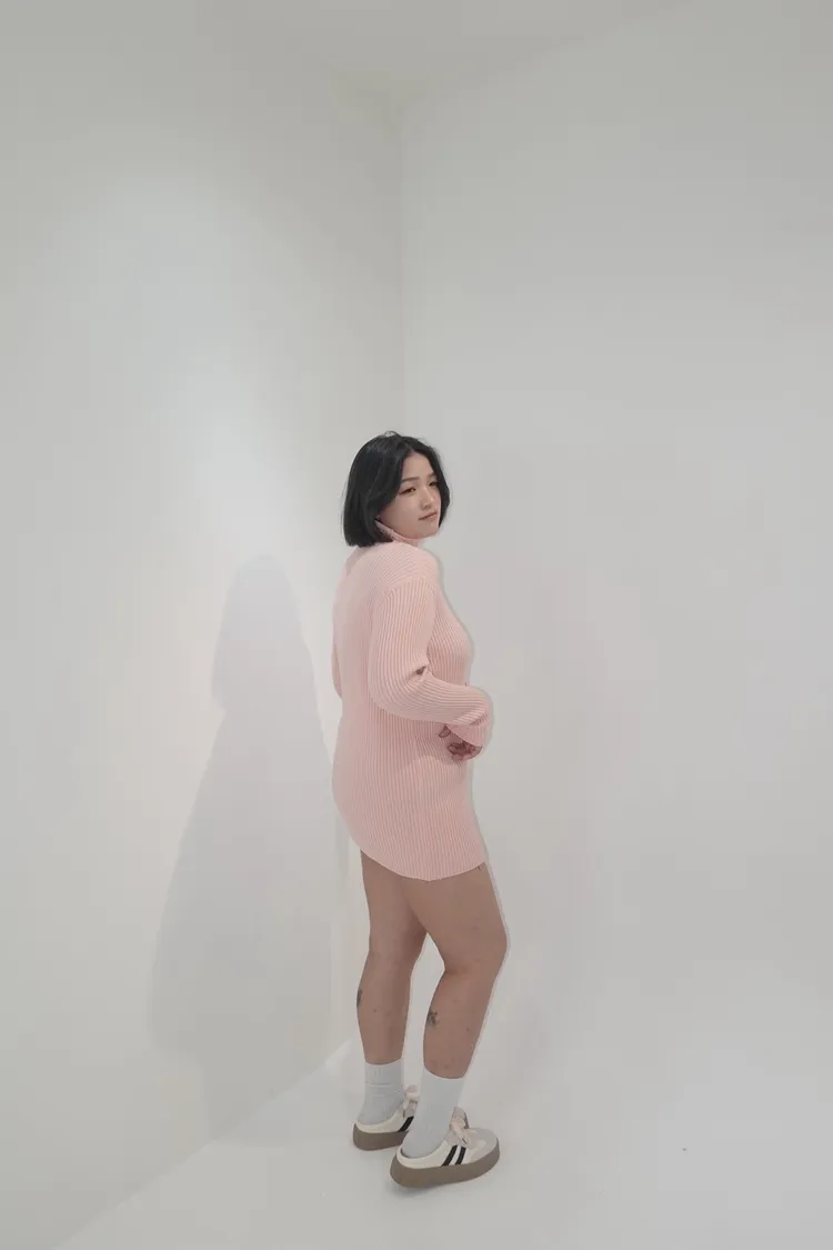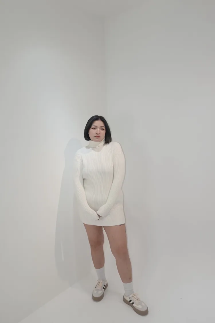 坑條高領針織上衣