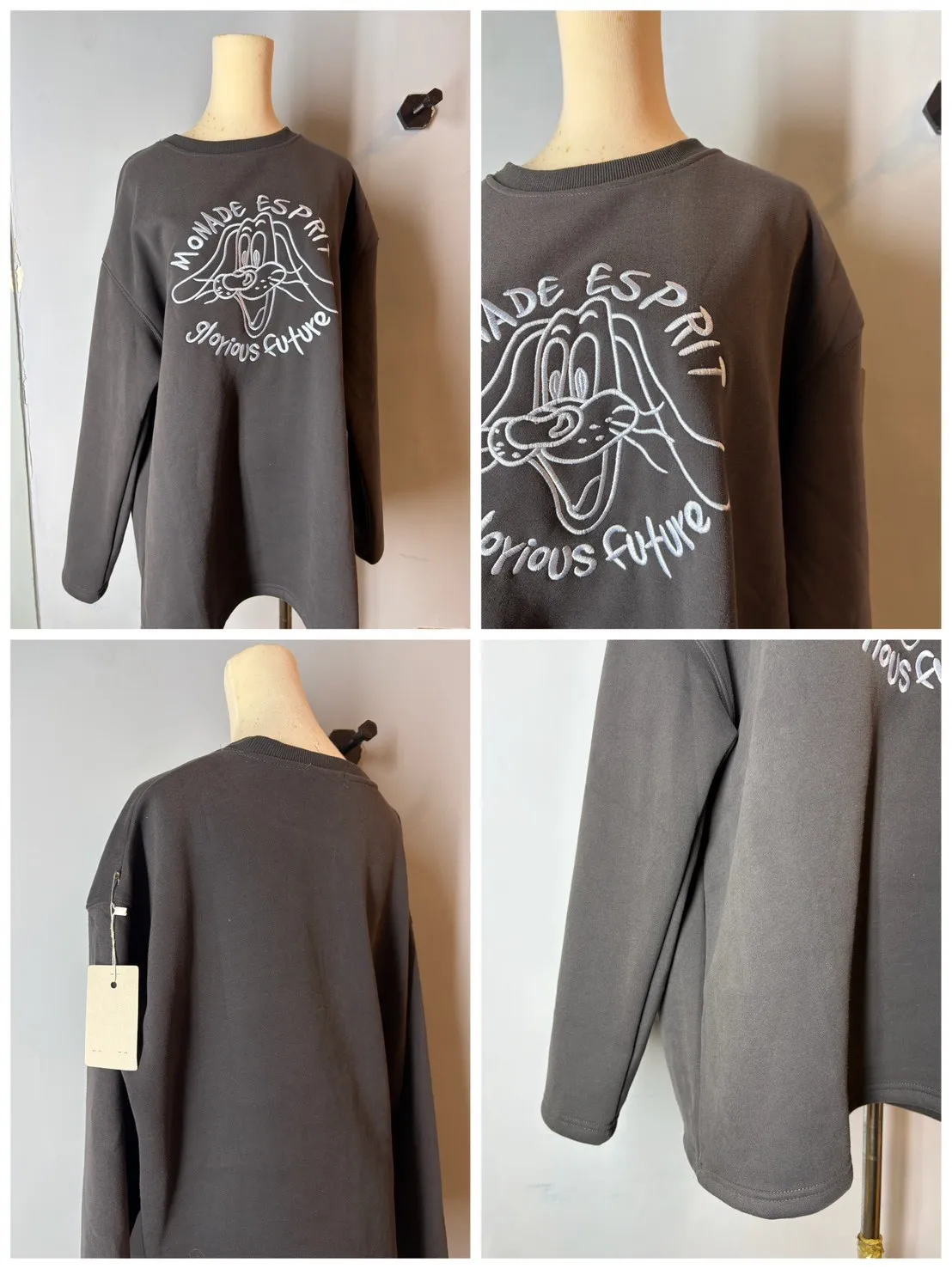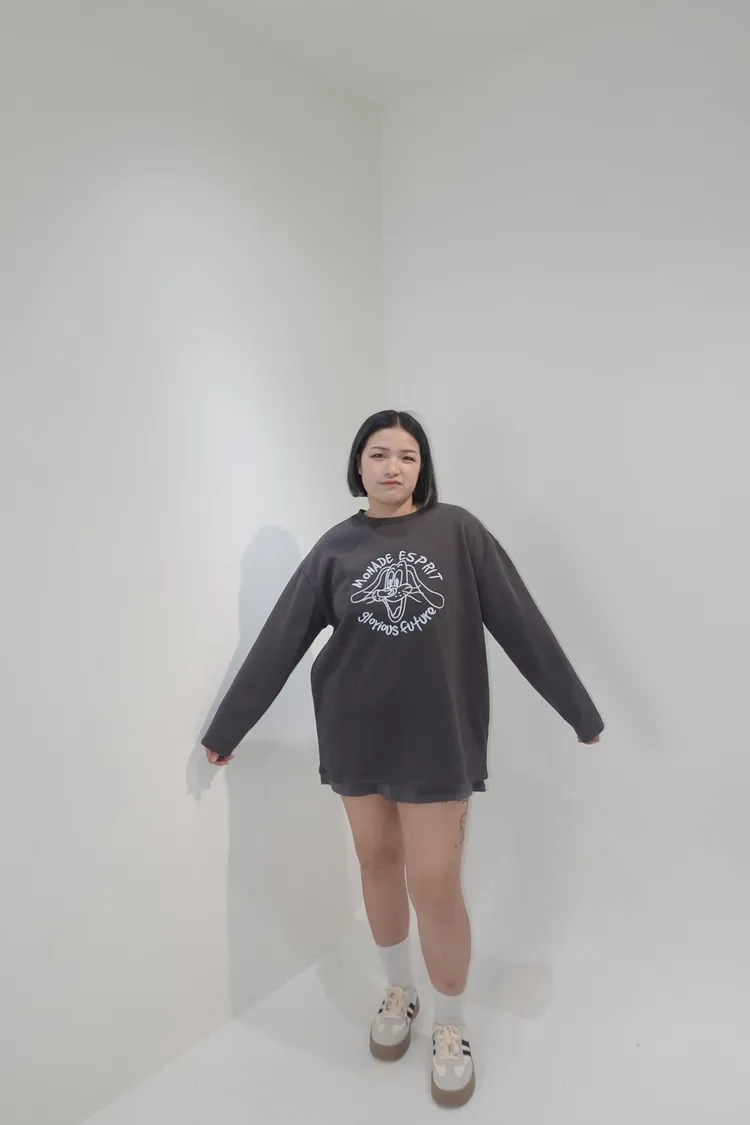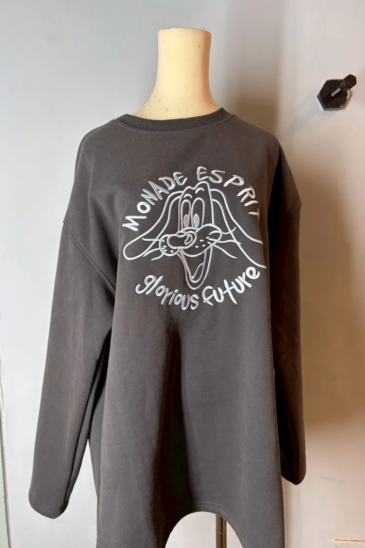 刺繡長耳狗狗內刷毛大學踢