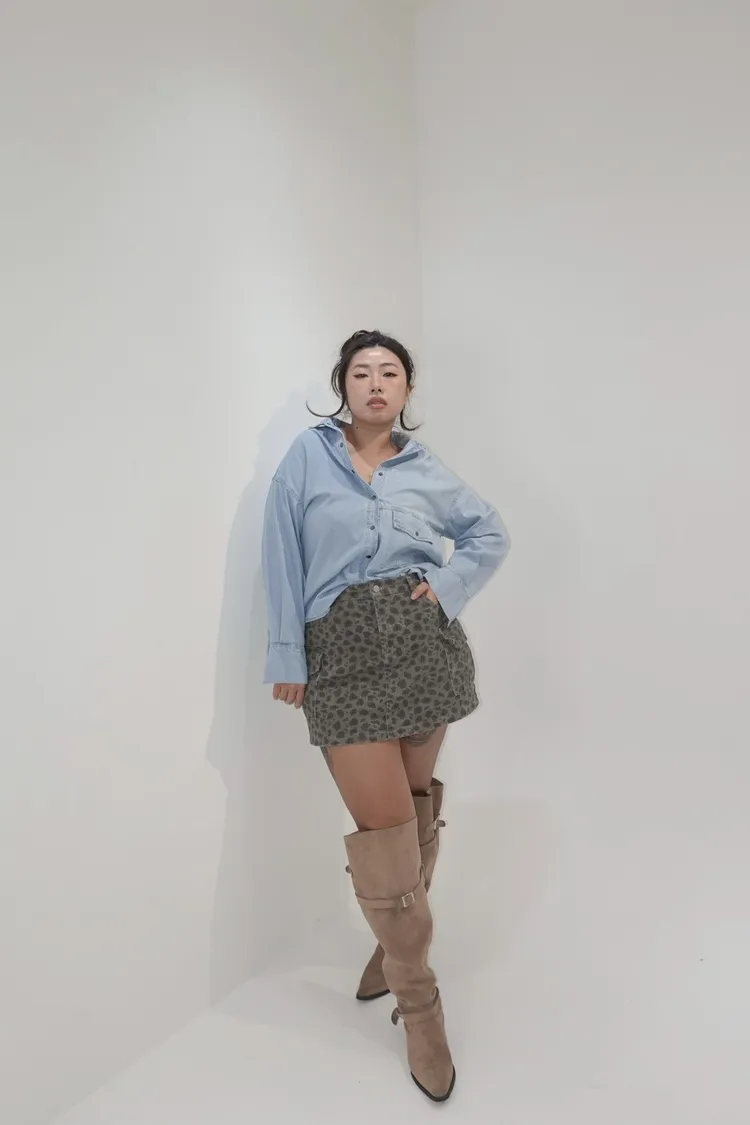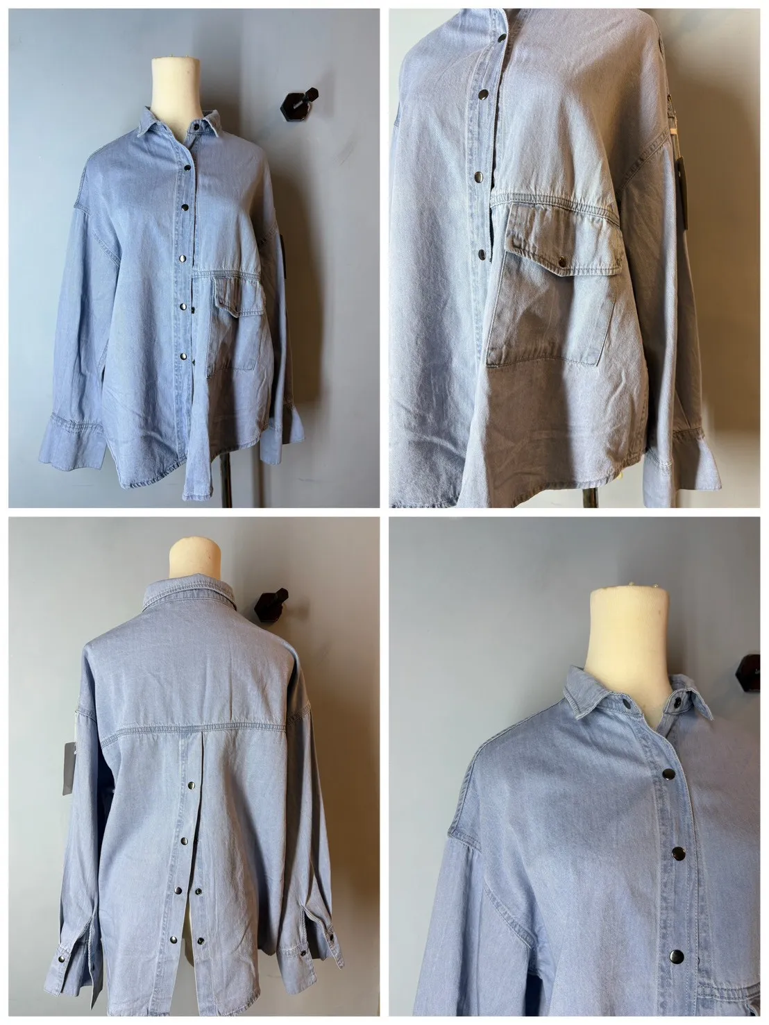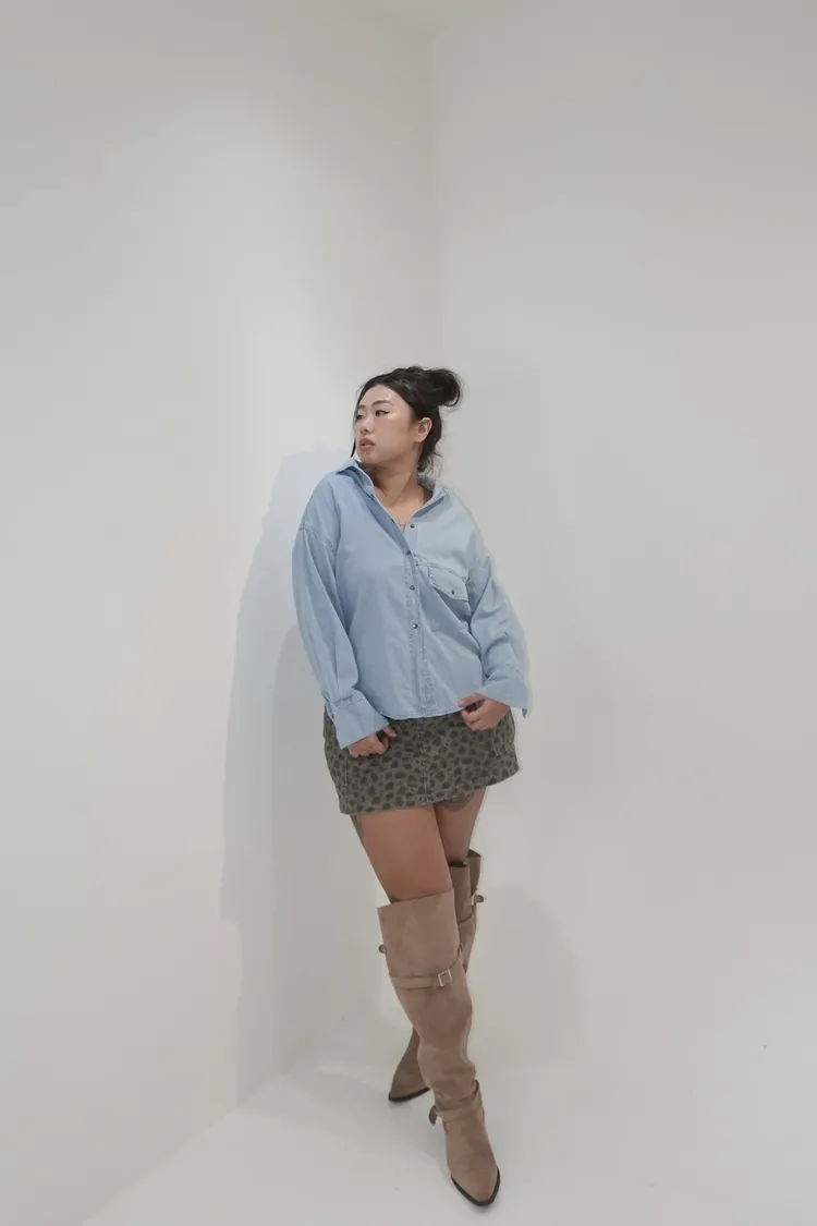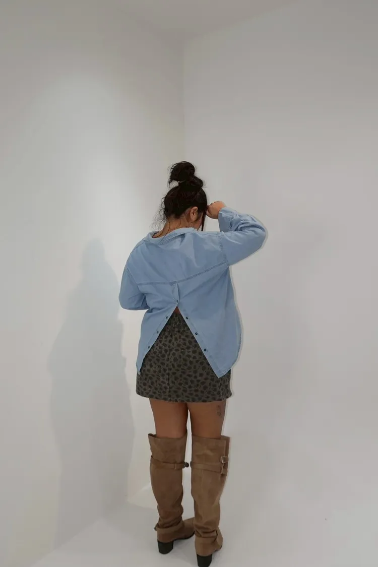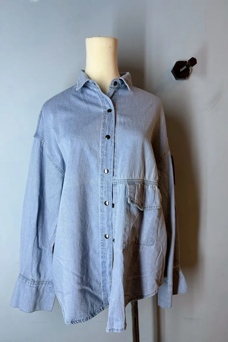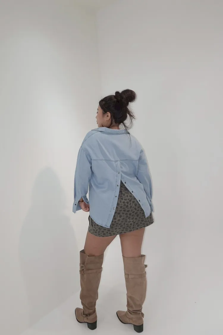 翻領牛仔被開釦造型襯衫