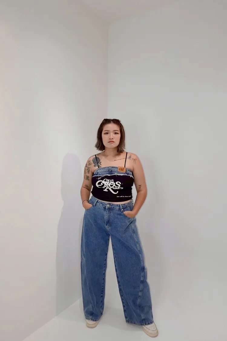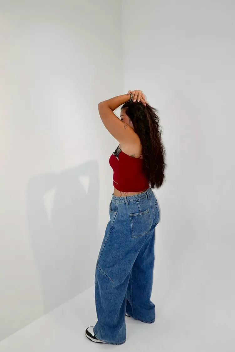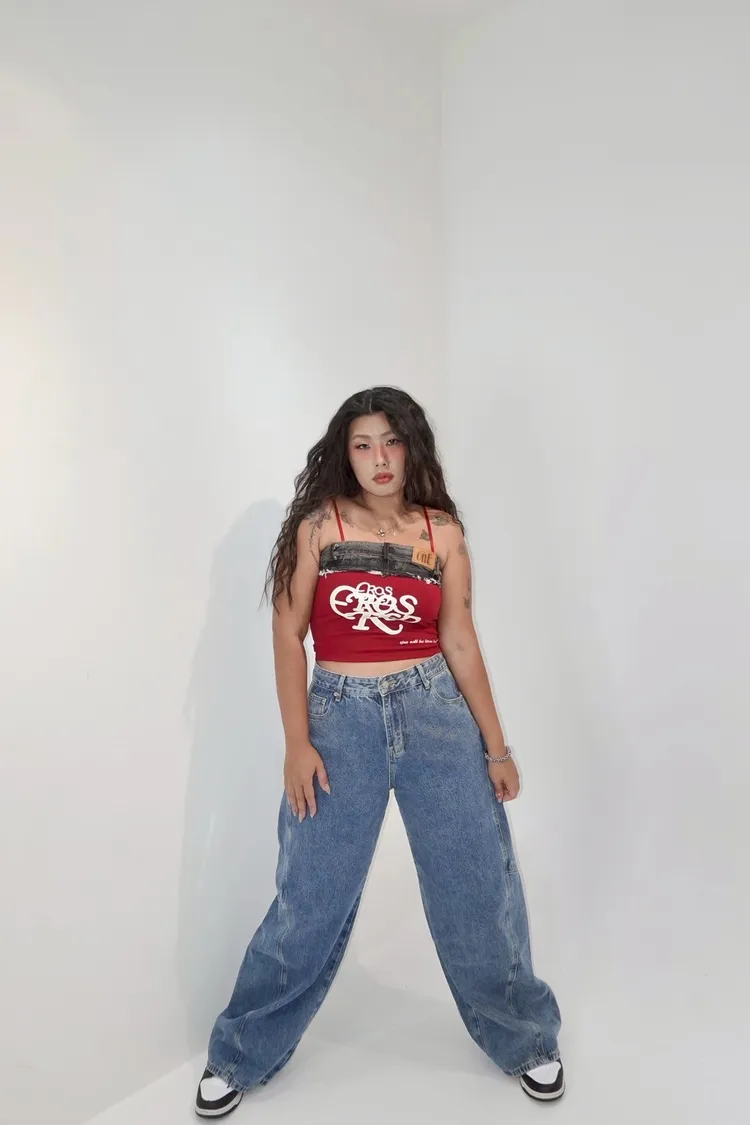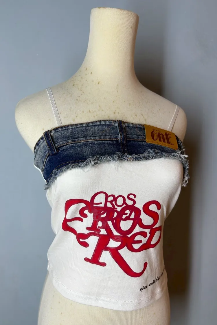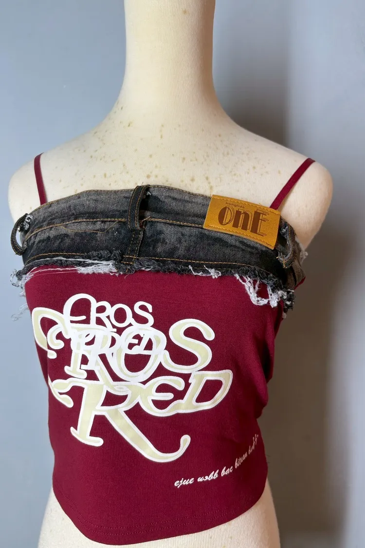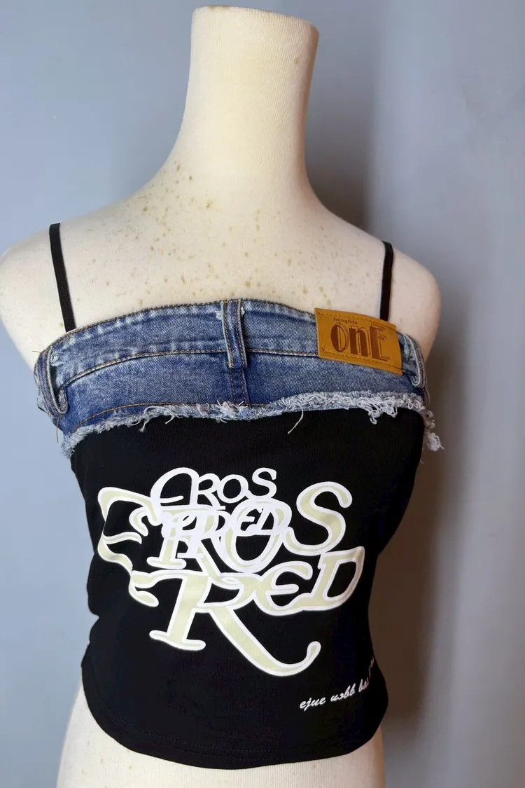 細肩帶牛仔拼接造型背心-現貨+預購