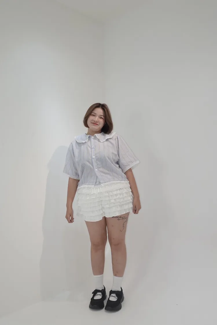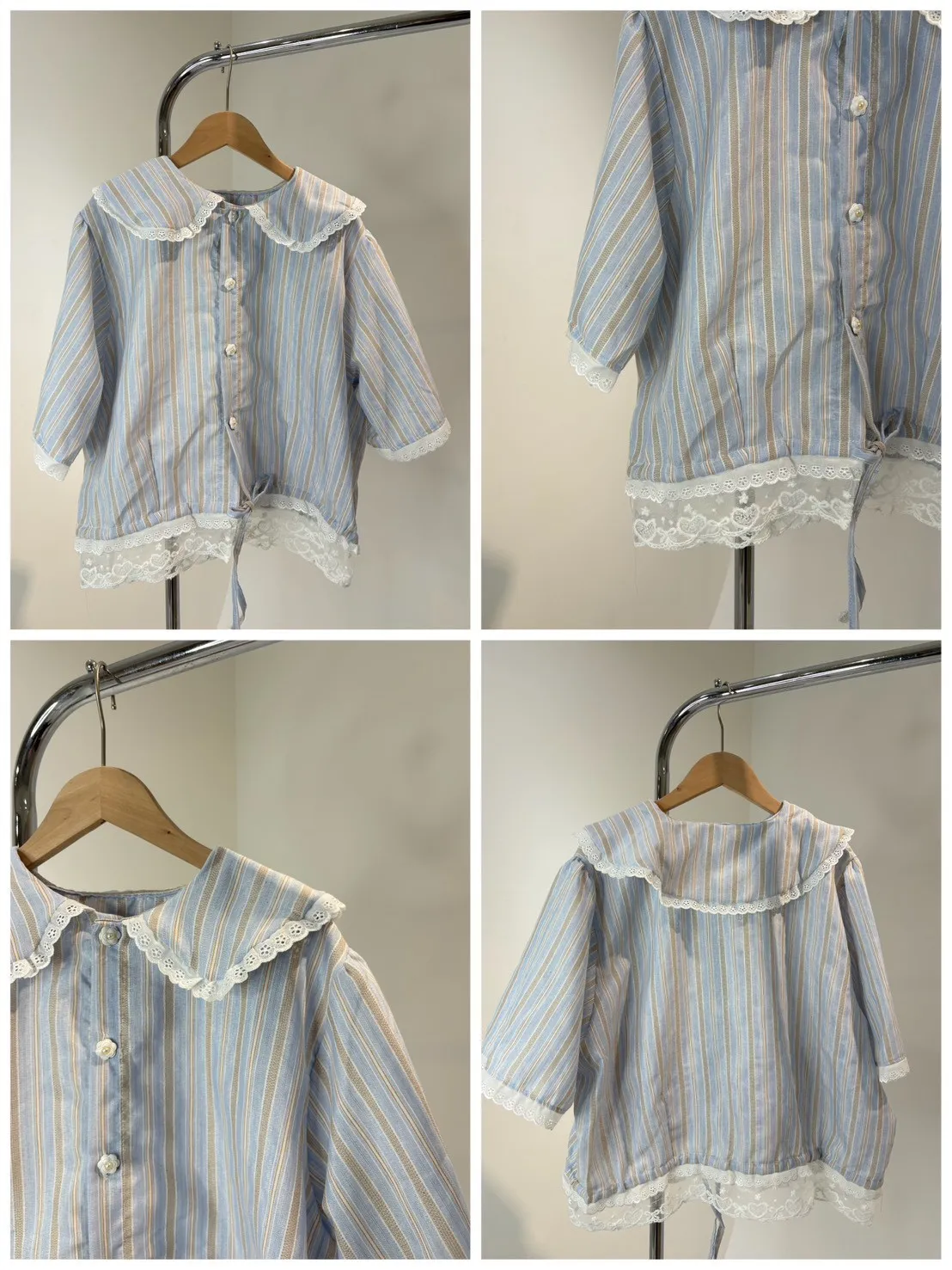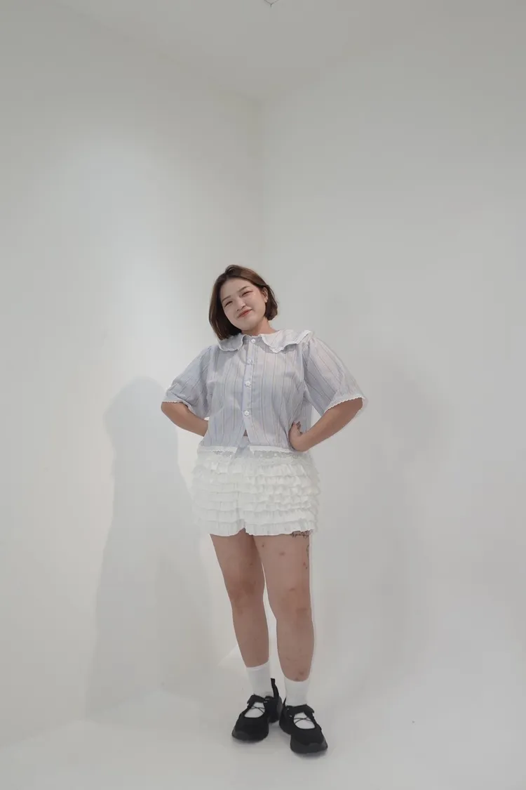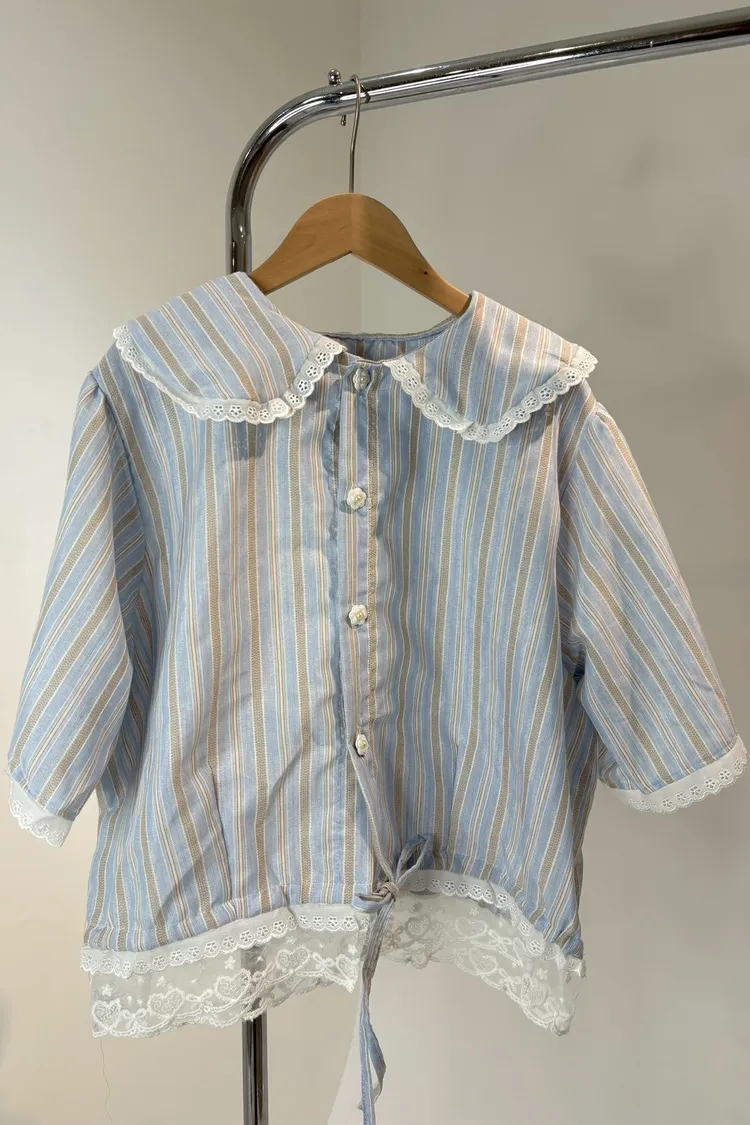 甜系娃娃領格紋短袖上衣