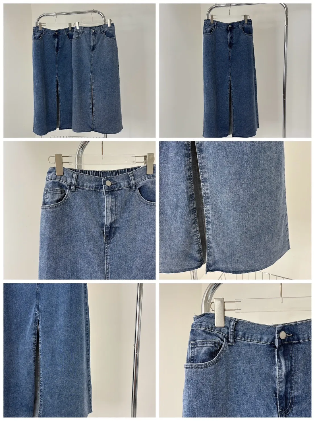 單釦後縮腰開衩牛仔長裙