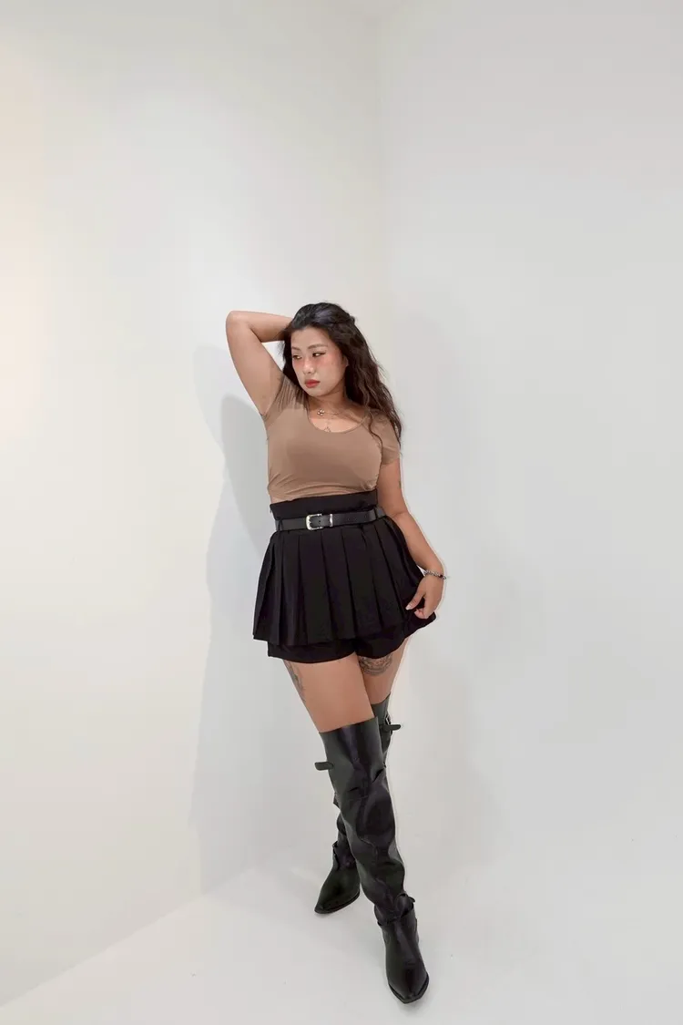 高腰百褶褲裙 附腰帶 -現貨+預購
