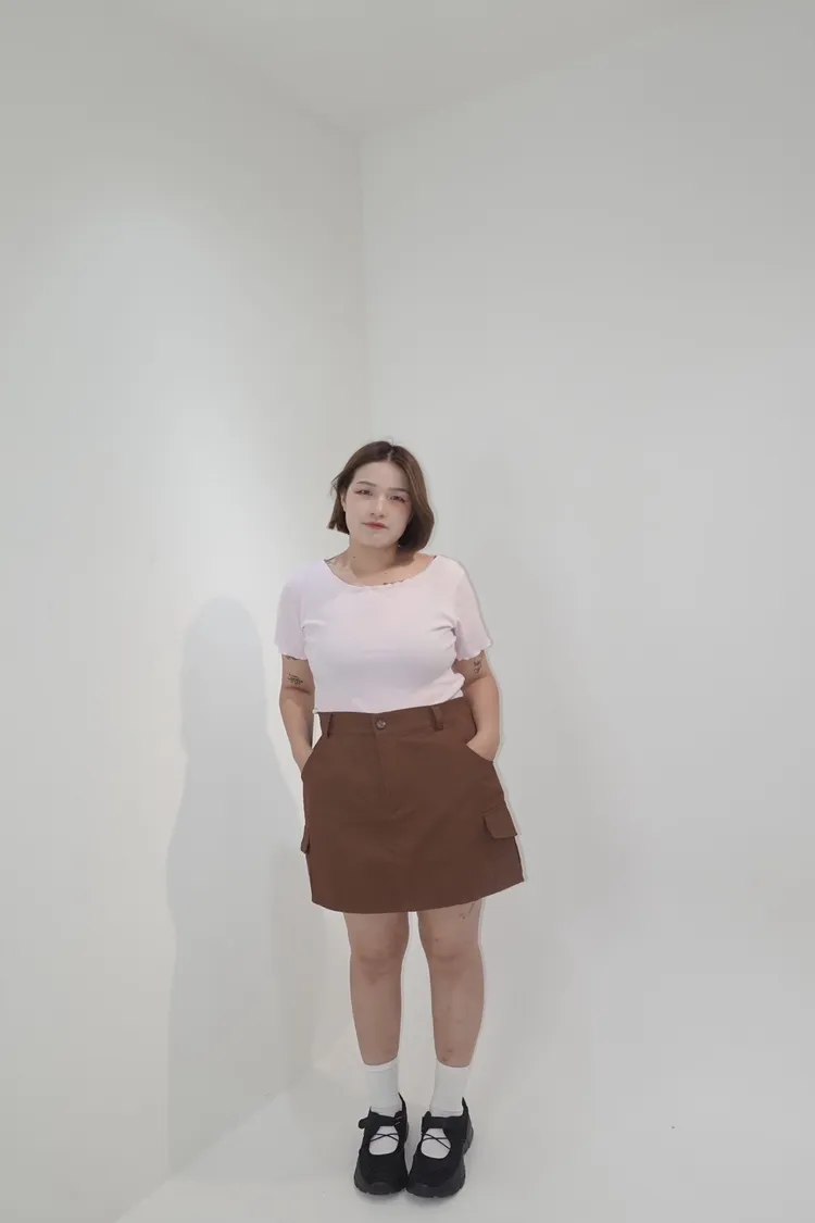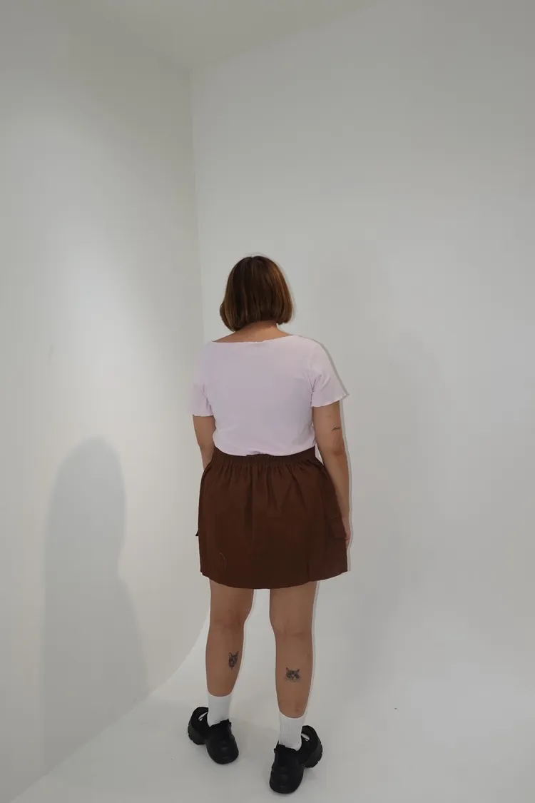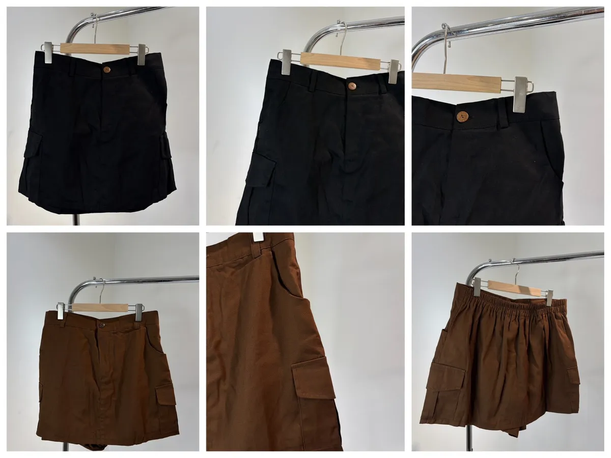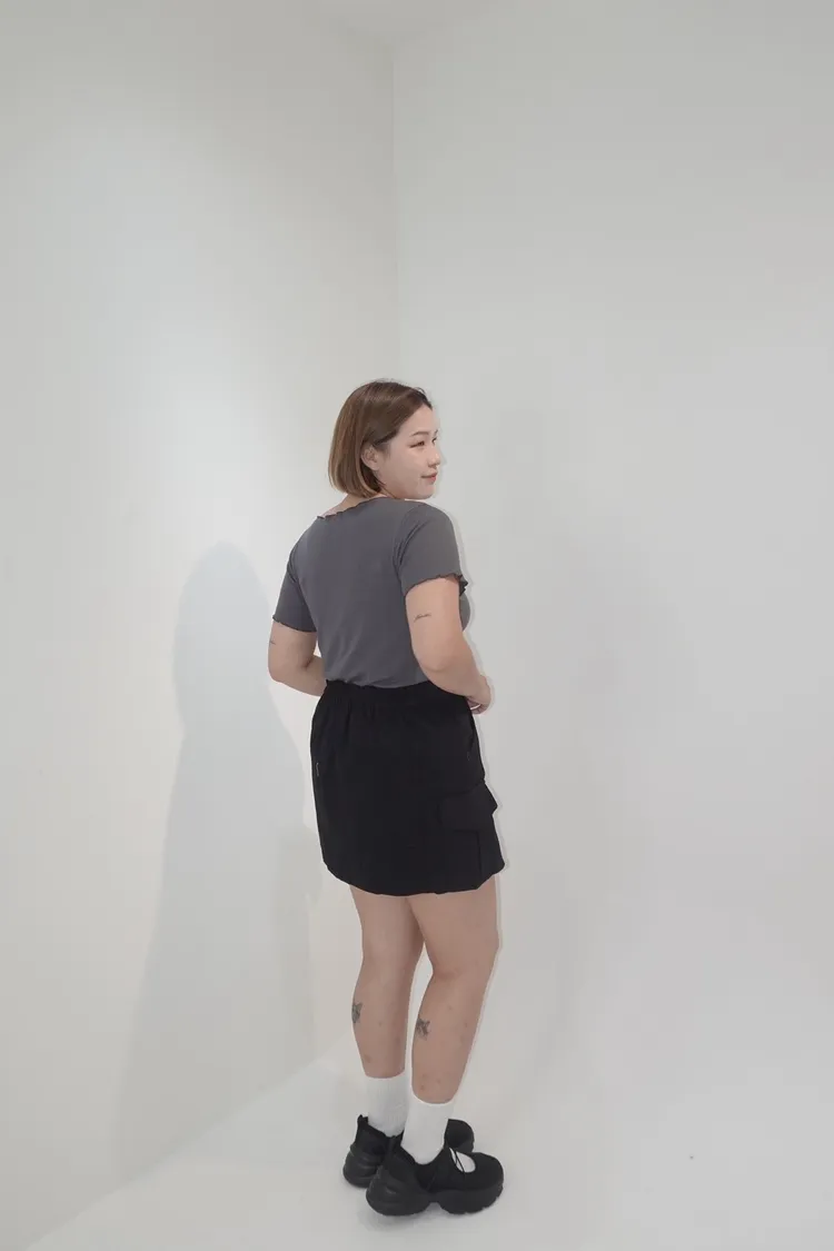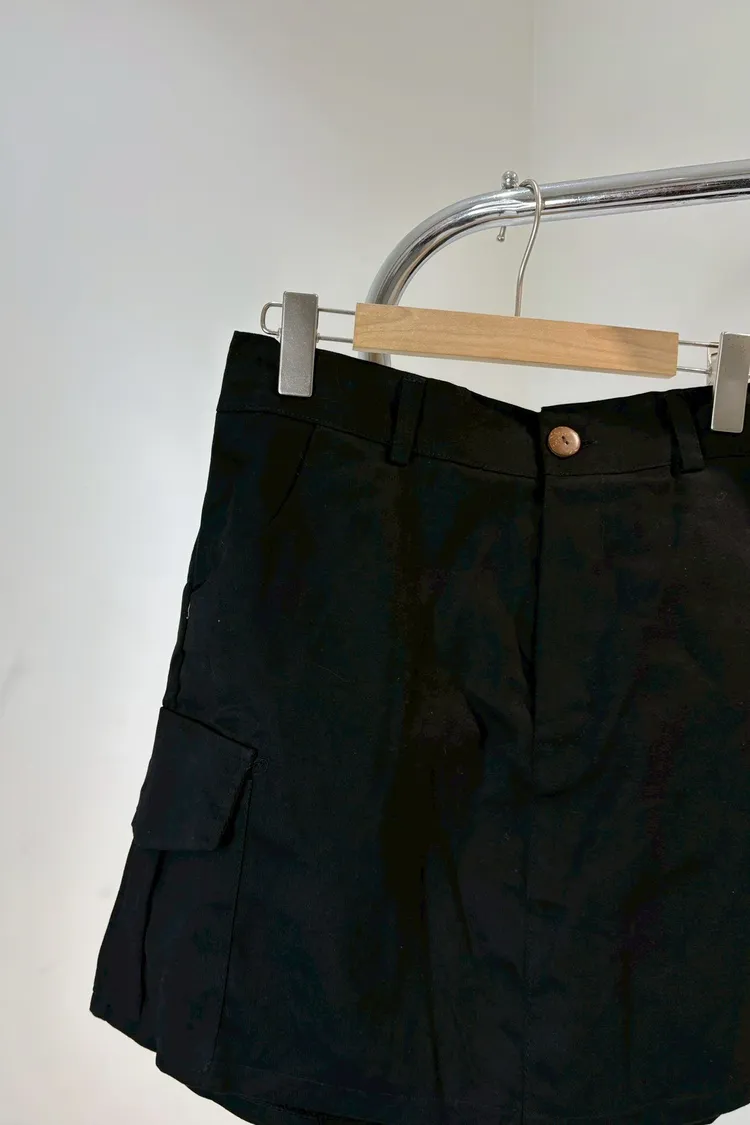 單釦後鬆緊側口袋工裝褲裙