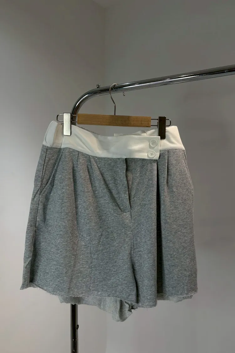 雙釦不修邊休閒短褲