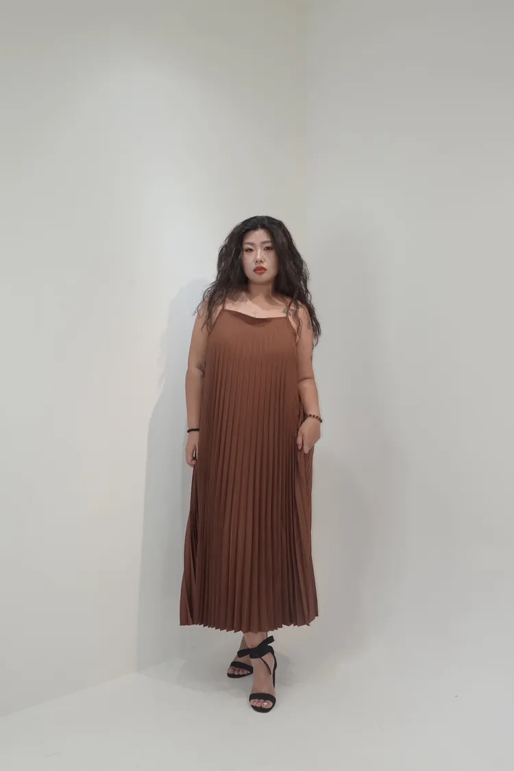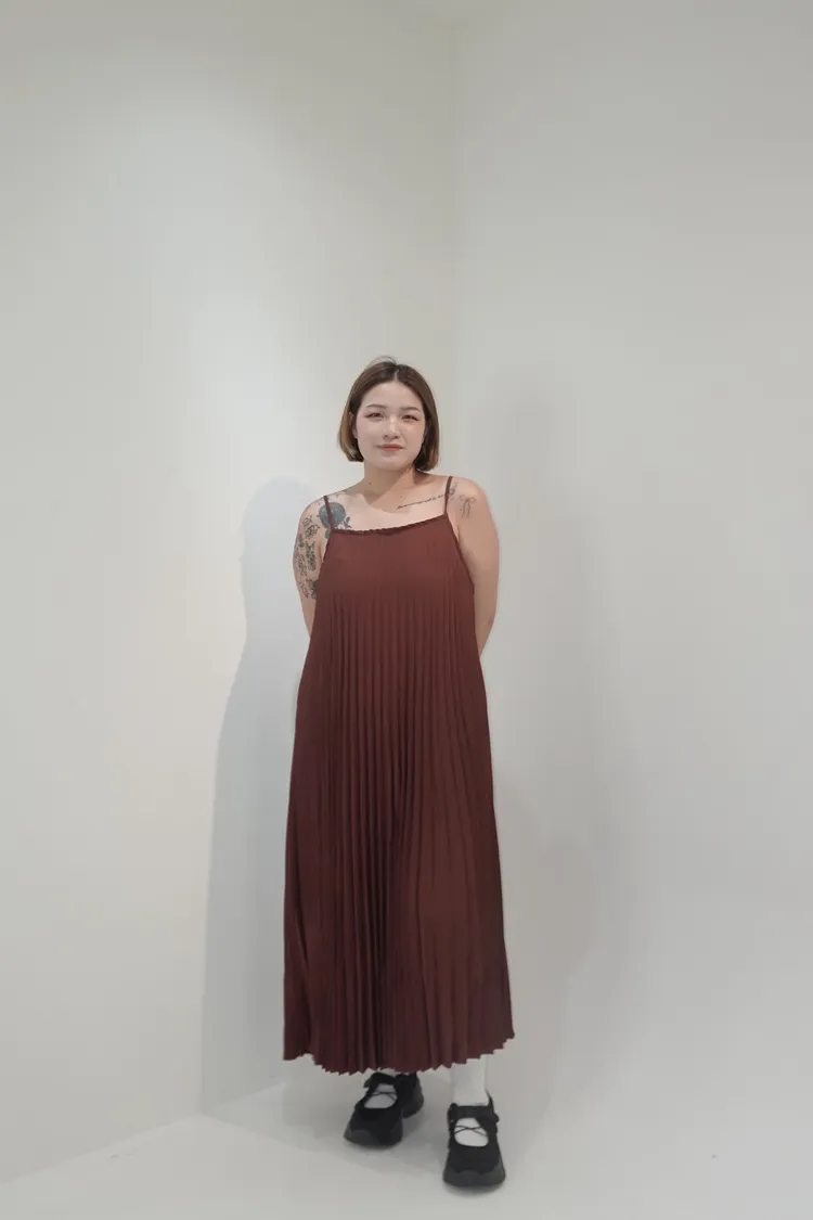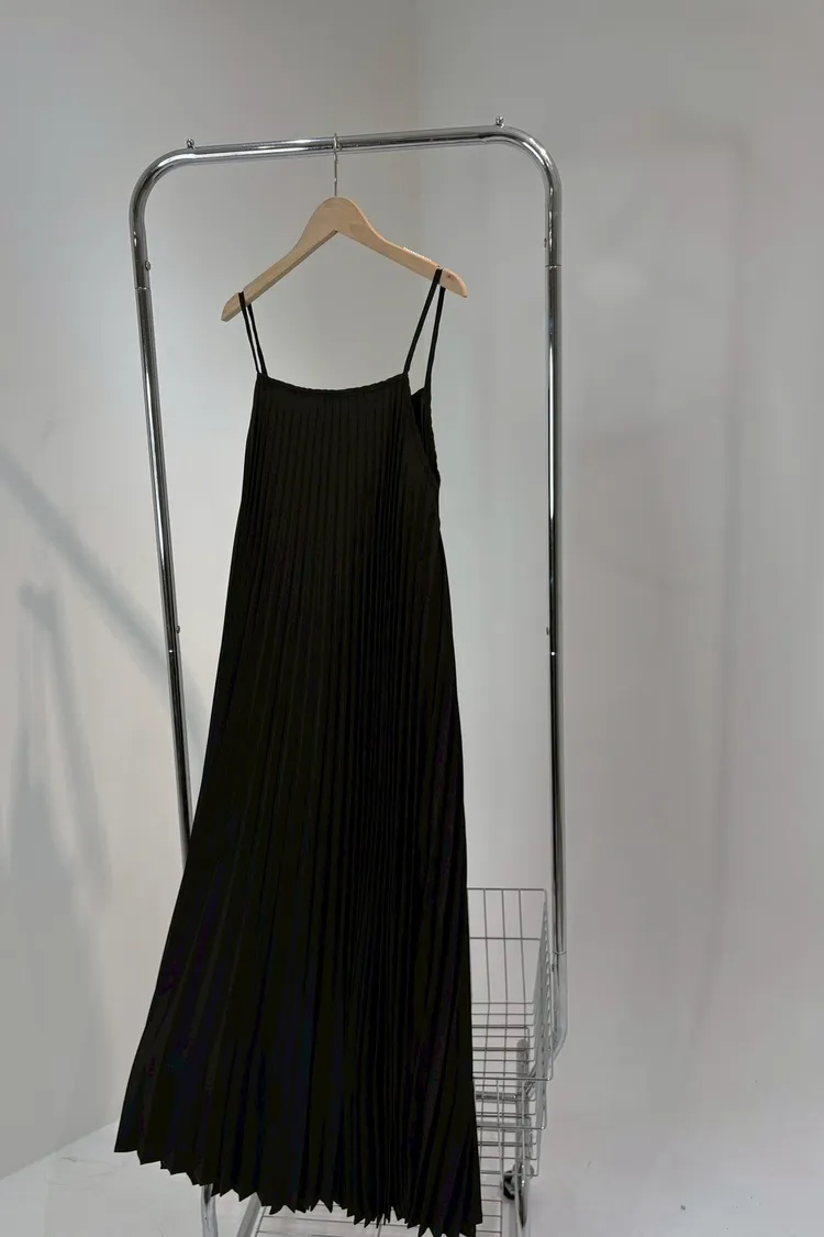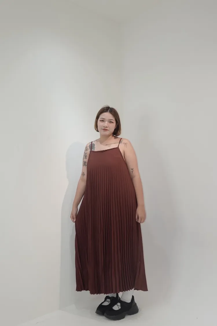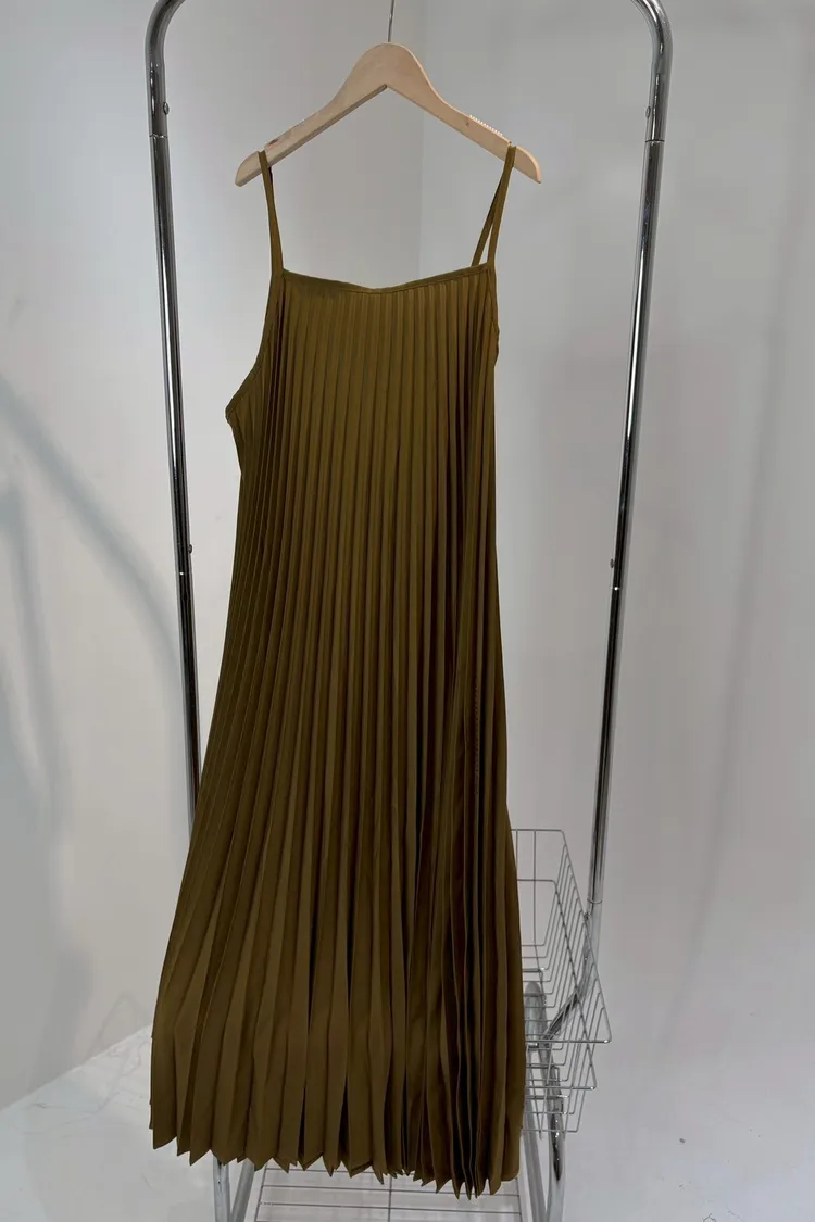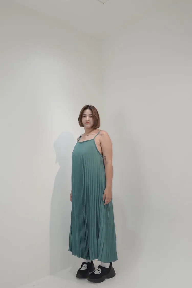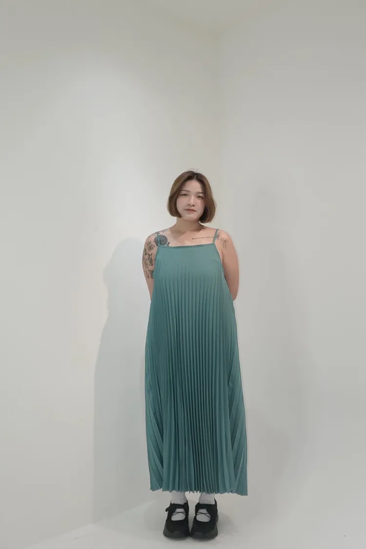 細肩帶壓褶長洋