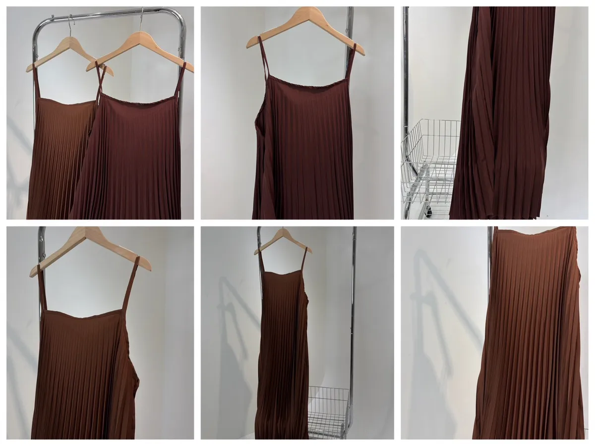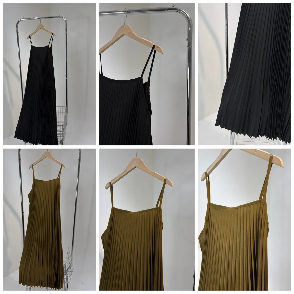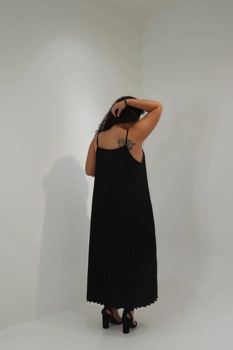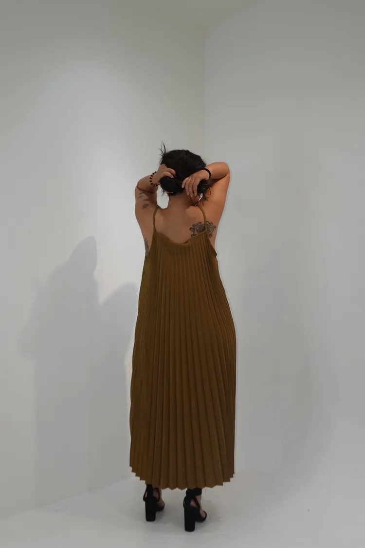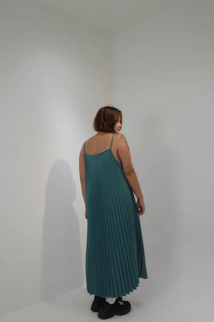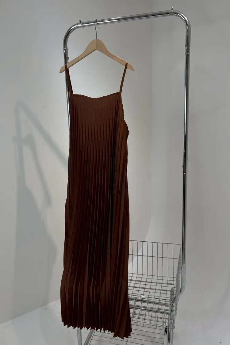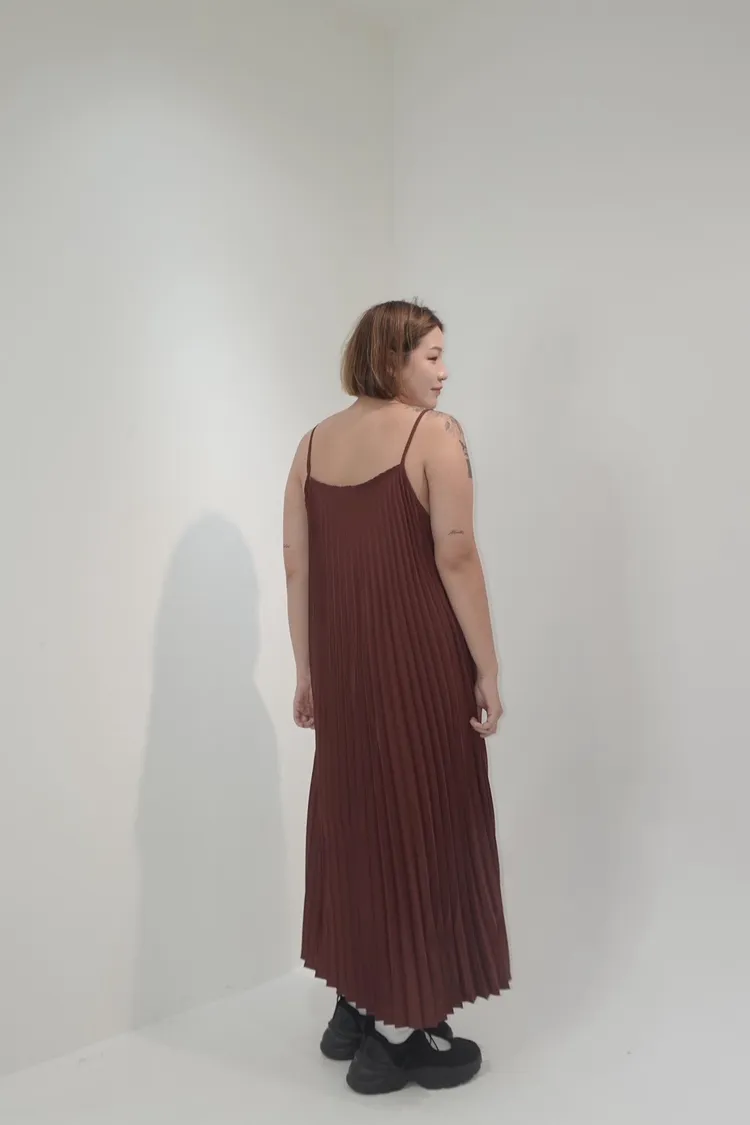 細肩帶壓褶長洋