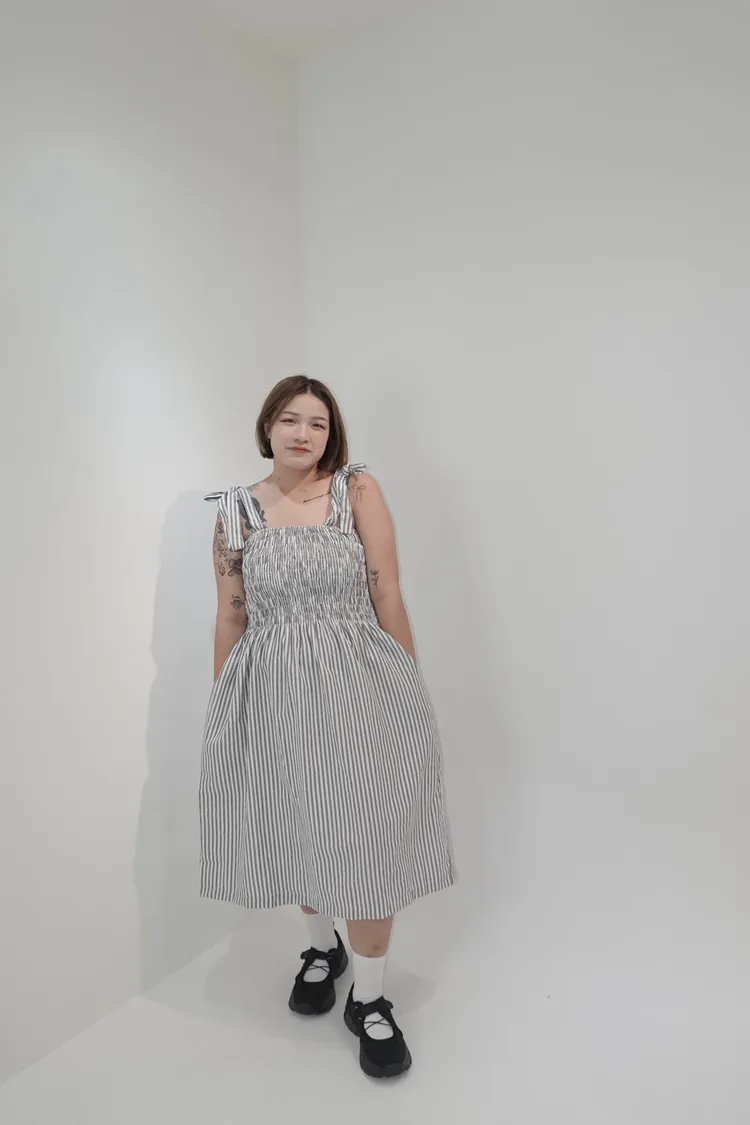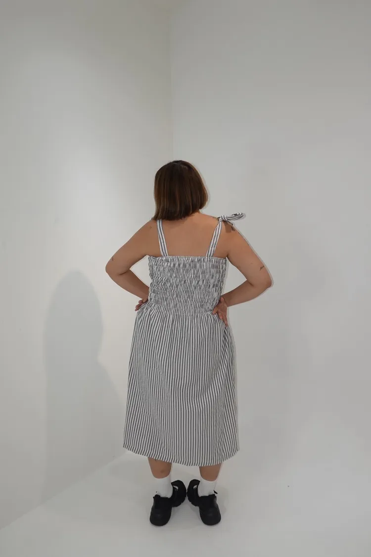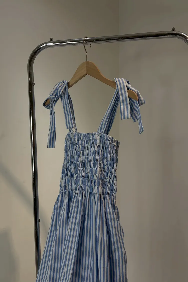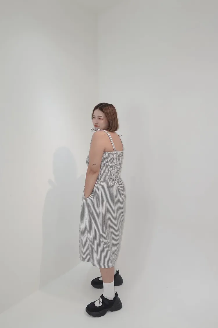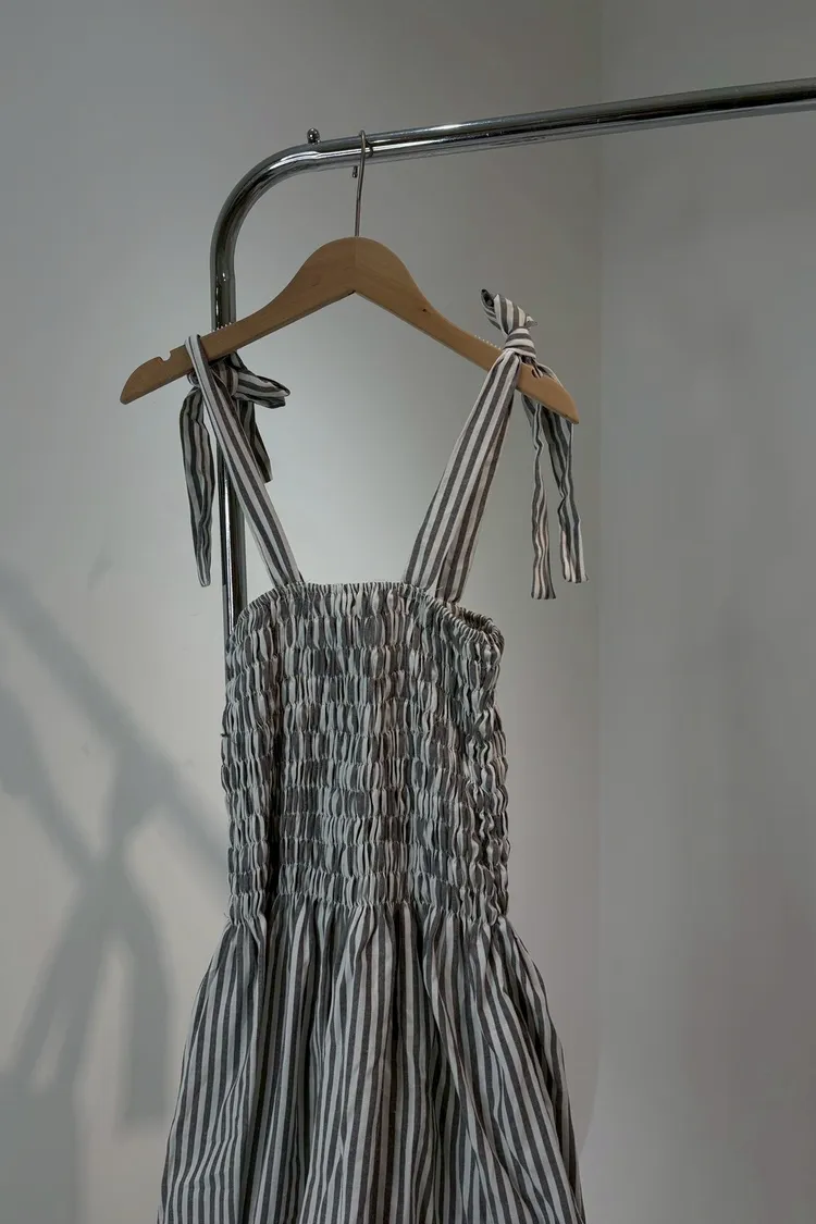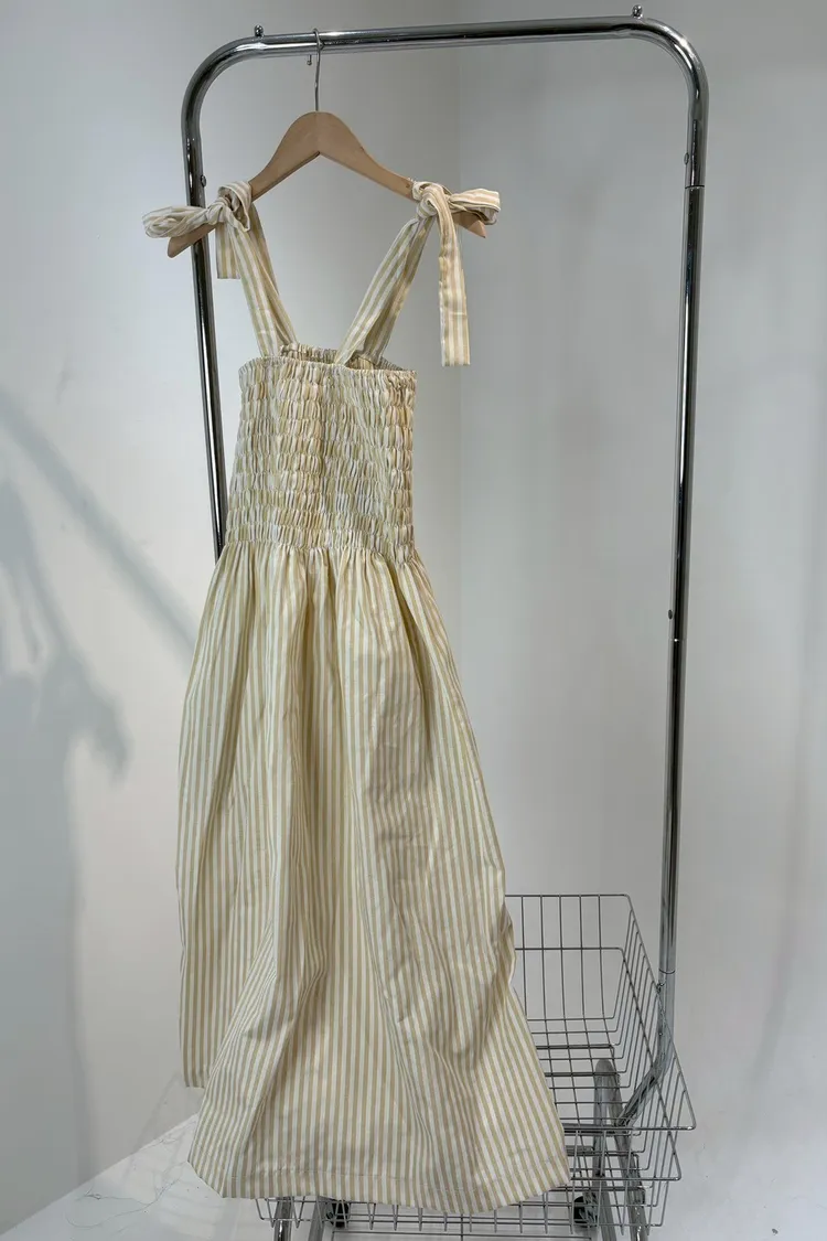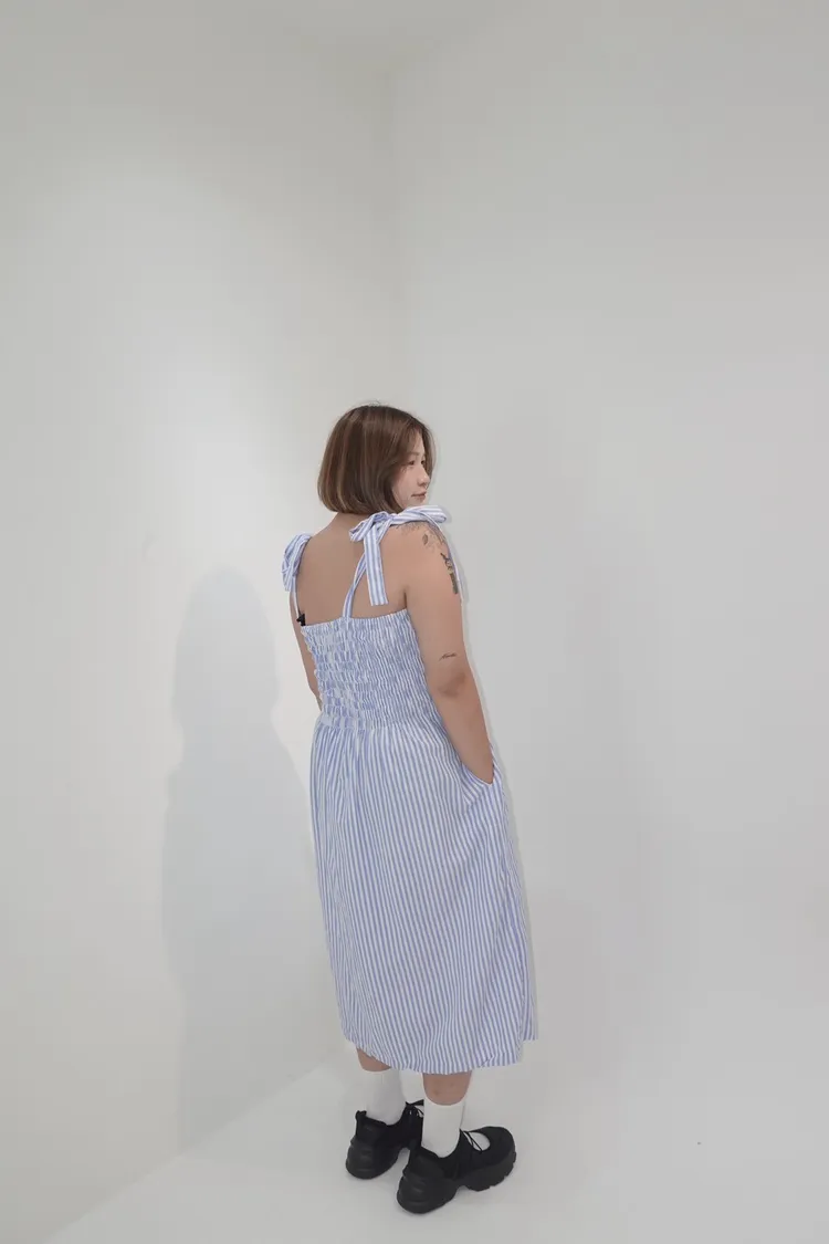 條紋橡筋綁帶長洋