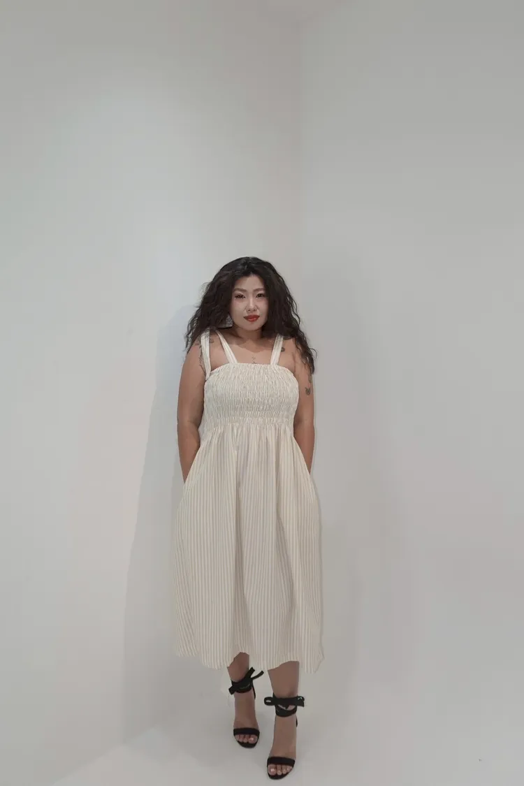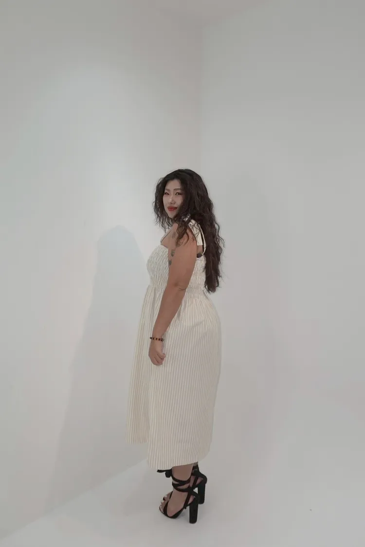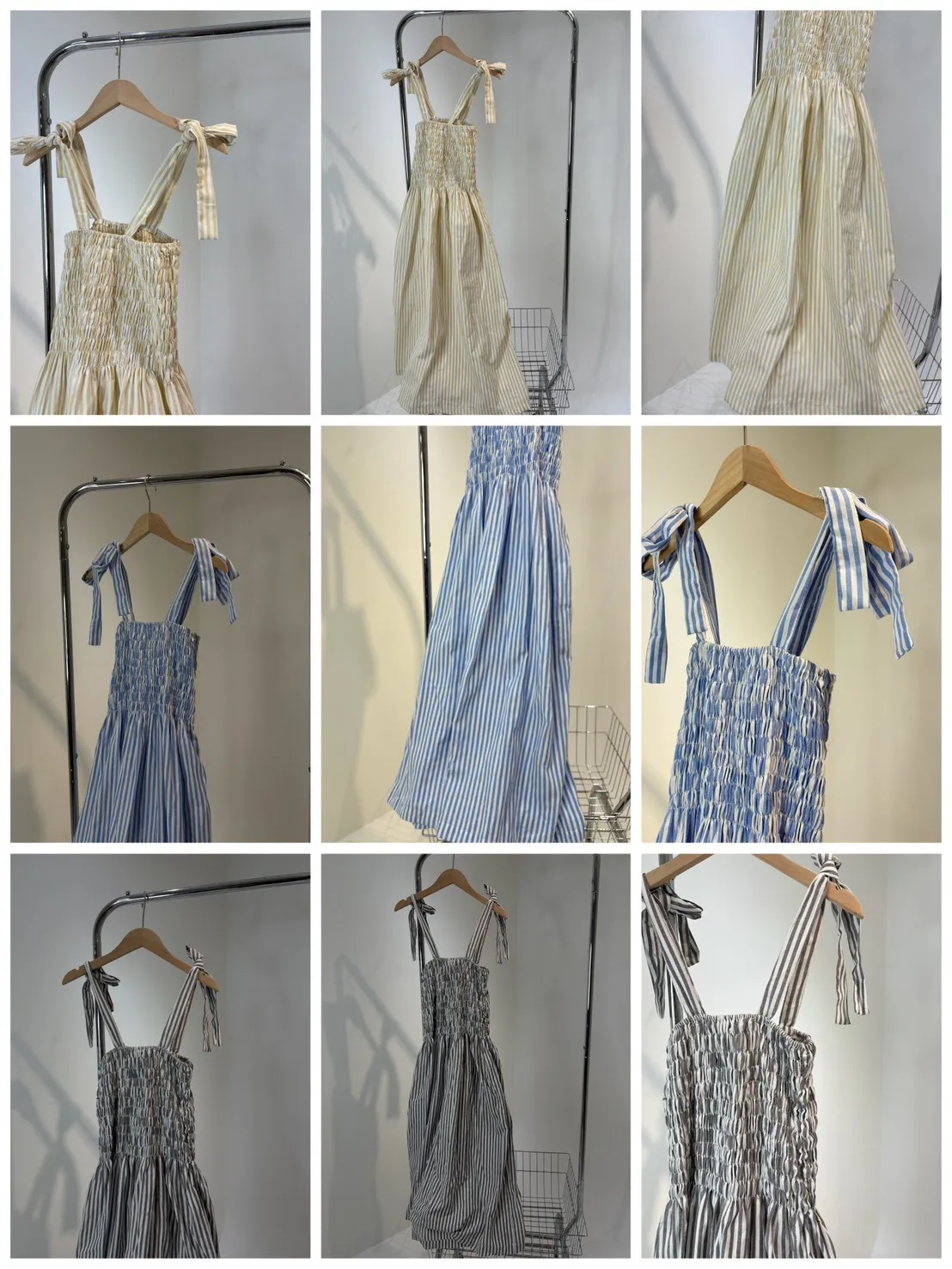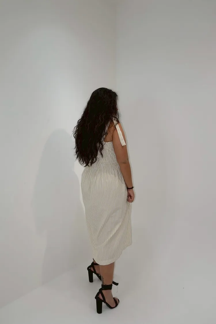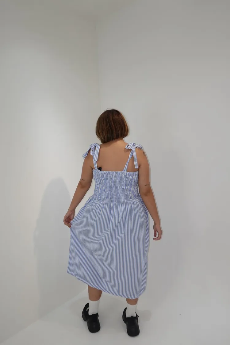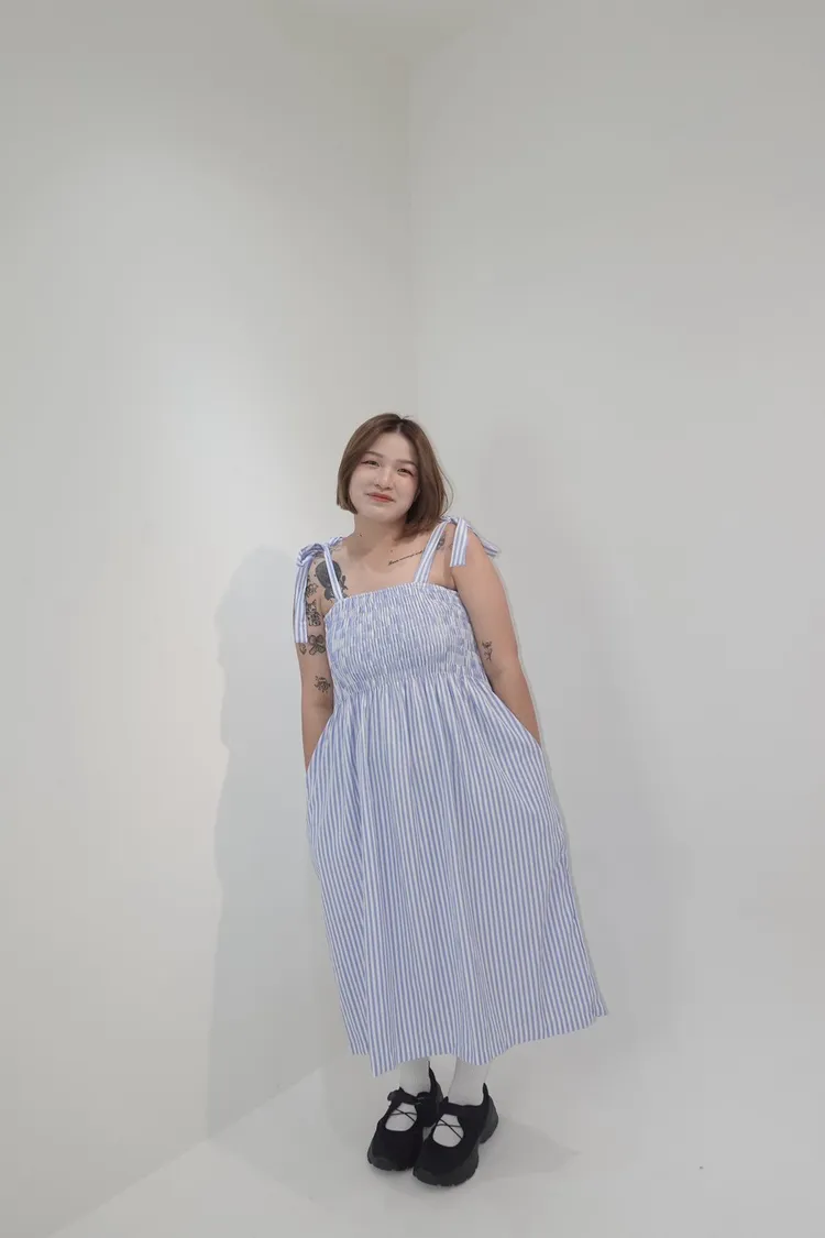 條紋橡筋綁帶長洋